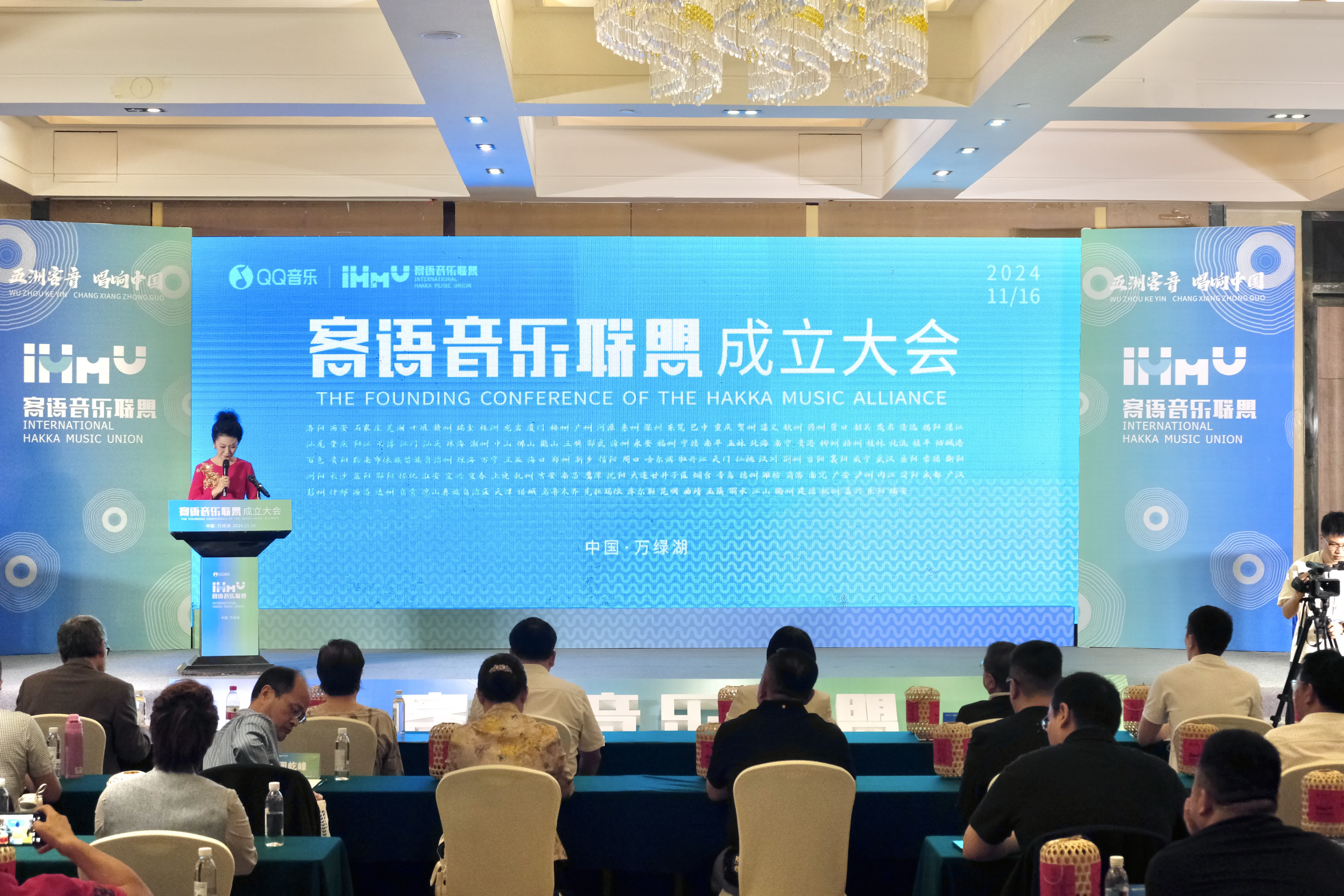 16日,客語音樂聯盟成立大會在河源市萬綠湖舉行,來自11省39個客屬城市及地區的100多位代表,共同見證了聯盟成立。河源市委常委、宣傳部部長江海鷹出席活動。