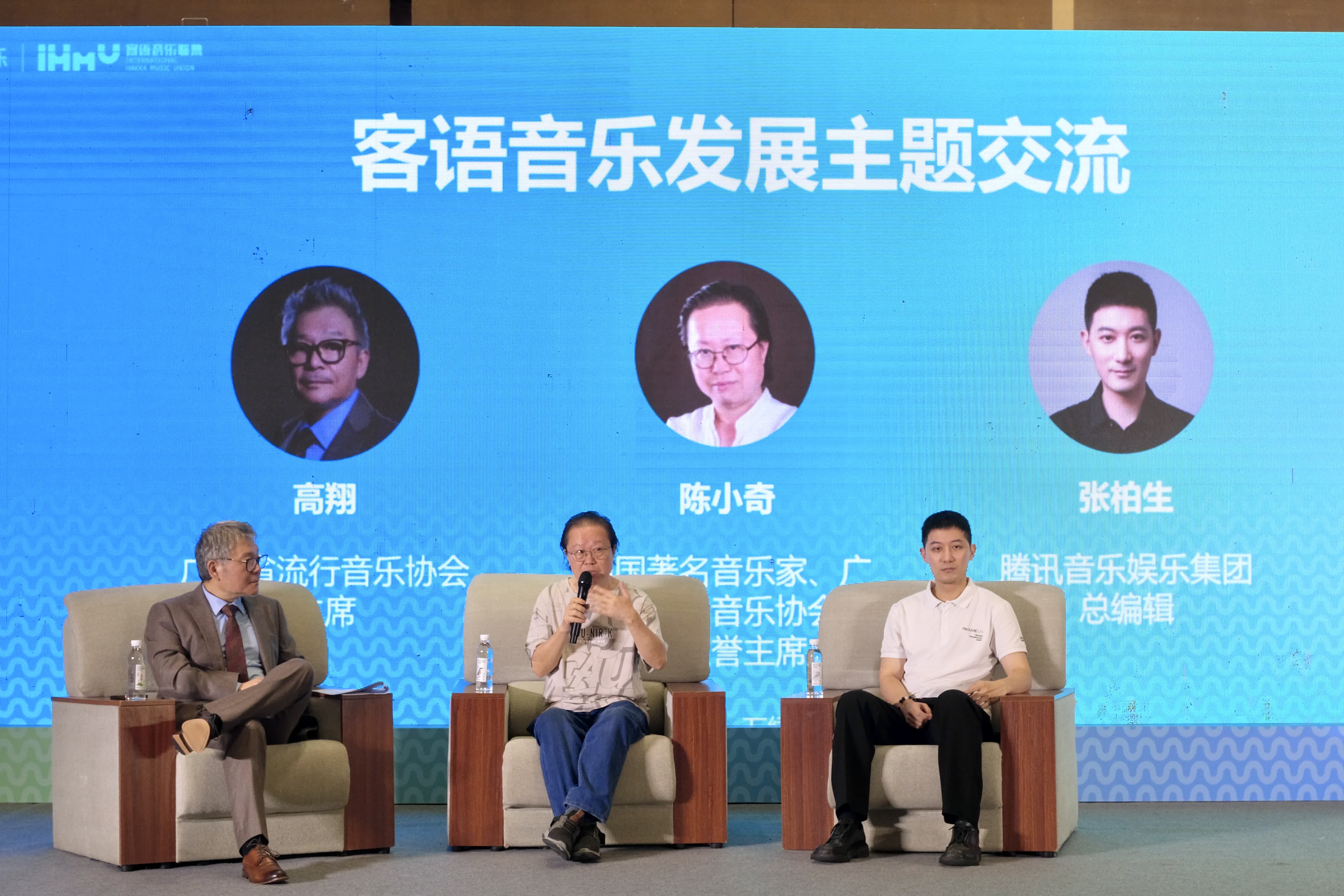 客語音樂發展主題交流會現場,邀請了廣東省流行音樂協會終身榮譽主席陳小奇、騰訊音樂娛樂集團QQ音樂高級內容總監張柏生,圍繞如何更好推動客語音樂發展進行了深入探討,進一步推動音樂人在客語音樂發展道路上的創作熱情。