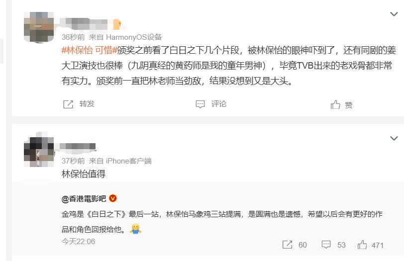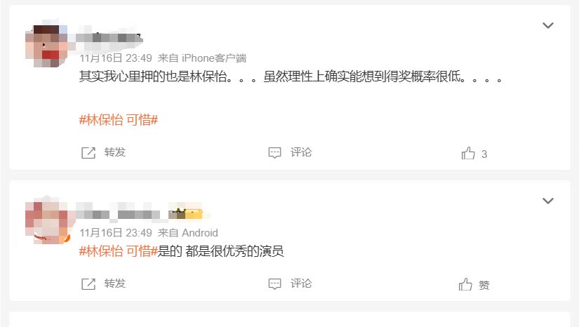 值得一提的是,香港演員林保怡憑藉《白日之下》提名了2024年金像獎、金馬獎、金雞獎三項電影大獎,最終卻與影帝這項殊榮擦肩而過。早前,在金雞獎紅毯儀式中,他神采奕奕地表示對拿獎充滿期待。林保怡此次落選,令眾多觀眾感到惋惜,部分內地觀眾在社交平台發文表示,林保怡是自己心目中的最佳男主。