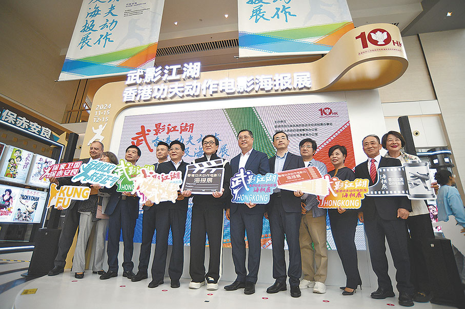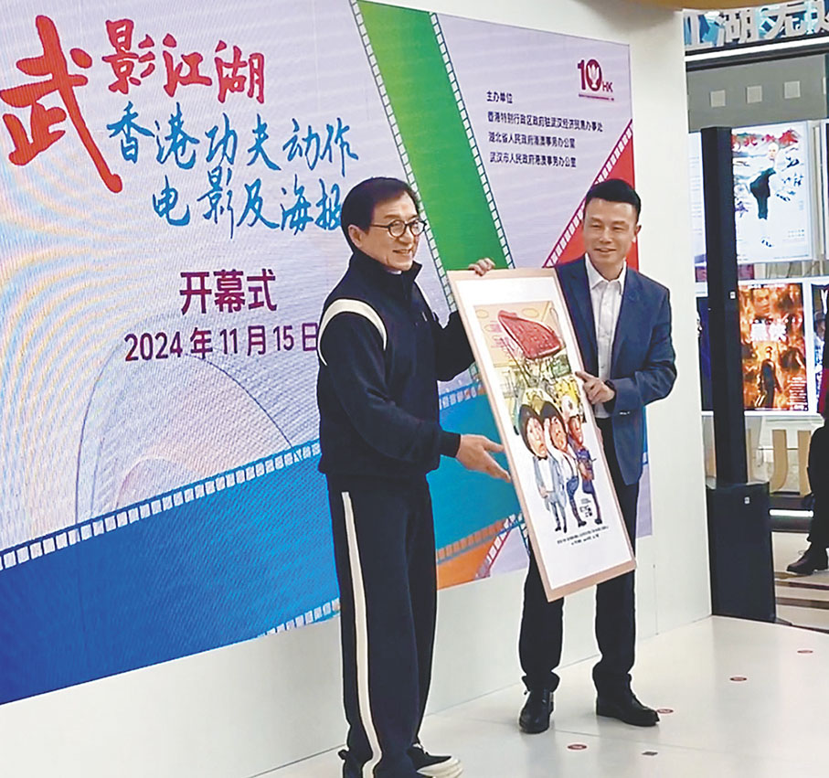 (香港文匯報記者 歐陽思柔 武漢報道)為深化香港與湖北兩地文化交流合作,香港特別行政區政府駐武漢經濟貿易辦事處(下稱「駐武漢辦」)、湖北省港澳辦及武漢市港澳辦11月15日起在武漢恒隆廣場共同舉辦「武影江湖·香港功夫動作電影展」暨「武影江湖·香港功夫動作電影海報展」,其中電影展將放映6部共12場經典功夫片,海報展則展出75張經典功夫電影海報,向新中國成立75周年致敬。功夫巨星成龍作為神秘嘉賓現身開幕式,並與現場300多名嘉賓和粉絲熱情互動。成龍表示香港武行搏命演出,用纍纍傷痕贏得了世界的尊重,而當前電影特技、AI智能的廣泛應用雖然為演員規避了做高危動作的風險,但卻讓演員越來越「懶」,當明星的門檻降低,真正的動作明星卻正逐漸消失。