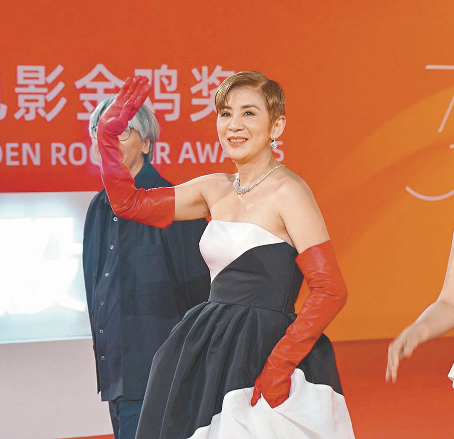惠英紅以其標誌性的幹練形象現身,其翠綠色長裙雖簡約但難掩強大氣場。身穿黑白拖地長裙現身的吳君如,十分輕鬆地與現場影迷打招呼。溫碧霞一襲粉色長裙亮相,微卷的垂肩長髮隨意披散,盡顯優雅與浪漫。關曉彤酒紅髮配粉黑撞色抹胸裙造型搶眼,盡顯成熟美;佟麗婭亮相金雞紅毯時一路與斯琴高娃手牽手,其粉色花型抹胸裙嬌俏迷人。