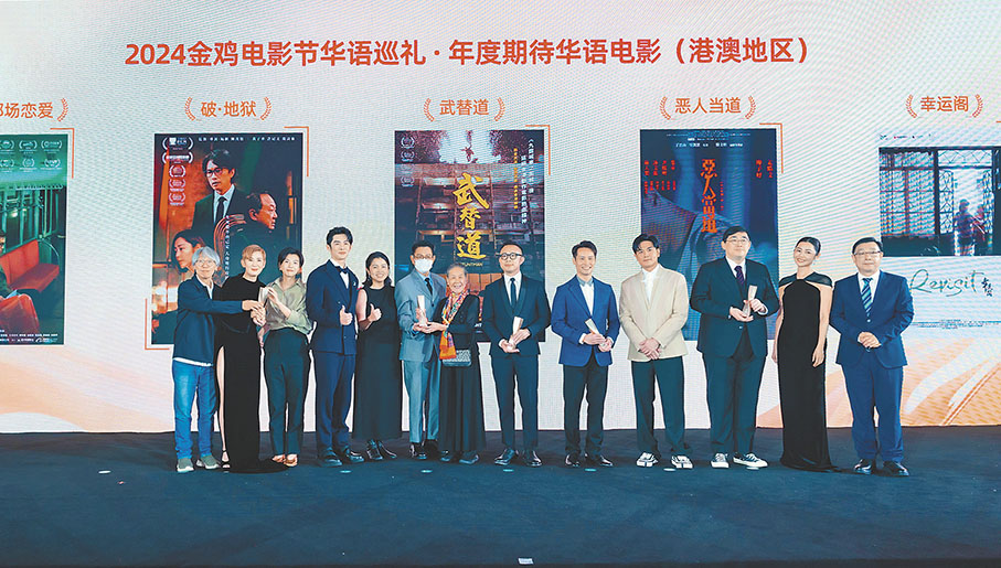 香港影人劉德華、吳君如、衛詩雅、伍允龍、太保,以及導演陳茂賢、梁冠堯、何妙祺、周鑫榮、郭子健和關文軒等,前晚一起出席金雞華語電影巡禮活動。9部香港電影包括《破·地獄》、《我談的那場戀愛》、《武替道》、《惡人當道》、《給愛麗絲》、《望月》、《二十四味》、《遊園驚夢》和《過年》亦於影展放映。而《破·地獄》、《我談的那場戀愛》、《武替道》及《惡人當道》更獲「年度期待華語電影」(港澳地區)榮譽,由劉德華頒獎。