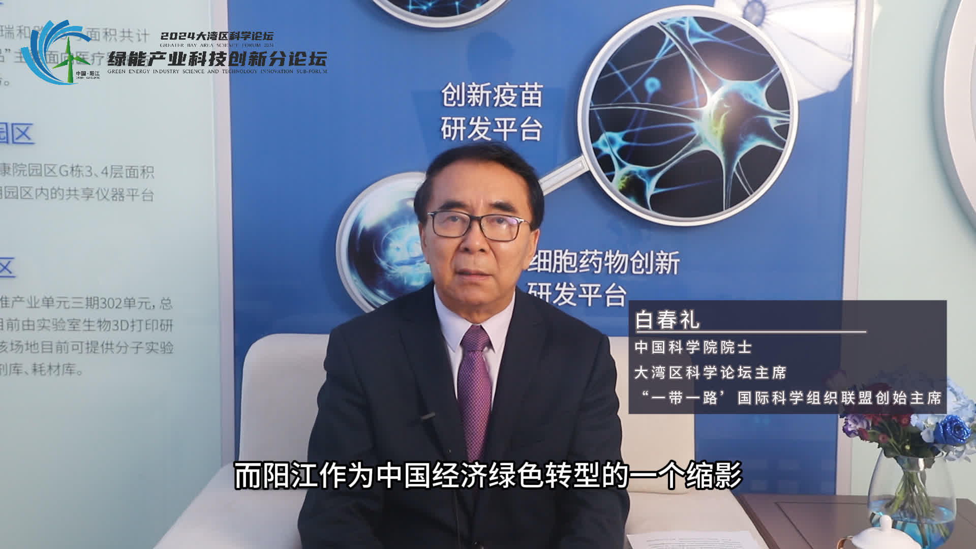 中國科學院院士、大灣區科學論壇主席、「一帶一路」國際科學組織聯盟創始主席白春禮在視頻致辭中表示,廣東通過科技創新不斷推動綠能產業升級,為中國乃至全球提供了可借鑒的綠色轉型範例,而陽江正是中國經濟綠色轉型的一個縮影。大灣區科學論壇將繼續秉持開放合作的理念,同以陽江為代表的夥伴一道,立足灣區、協同港澳、服務全國、面向世界,聯合全球頂尖科學力量與資源,促進科技創新與綠色產業深度融合,推動國家「雙碳」戰略目標加快實現。