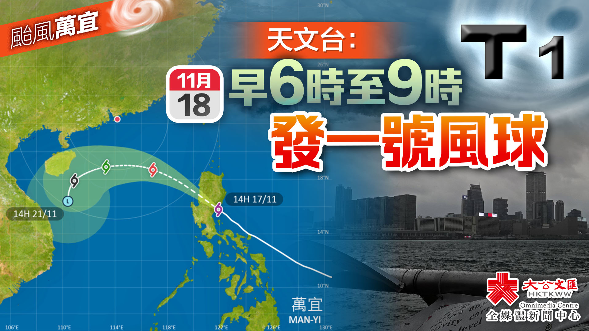 大公文匯全媒體報道,據最新預測,熱帶氣旋「萬宜」將於今晚(17日)午夜前後進入本港800公里範圍。天文台表示,將會在明早6時至9時之間發出一號戒備信號。