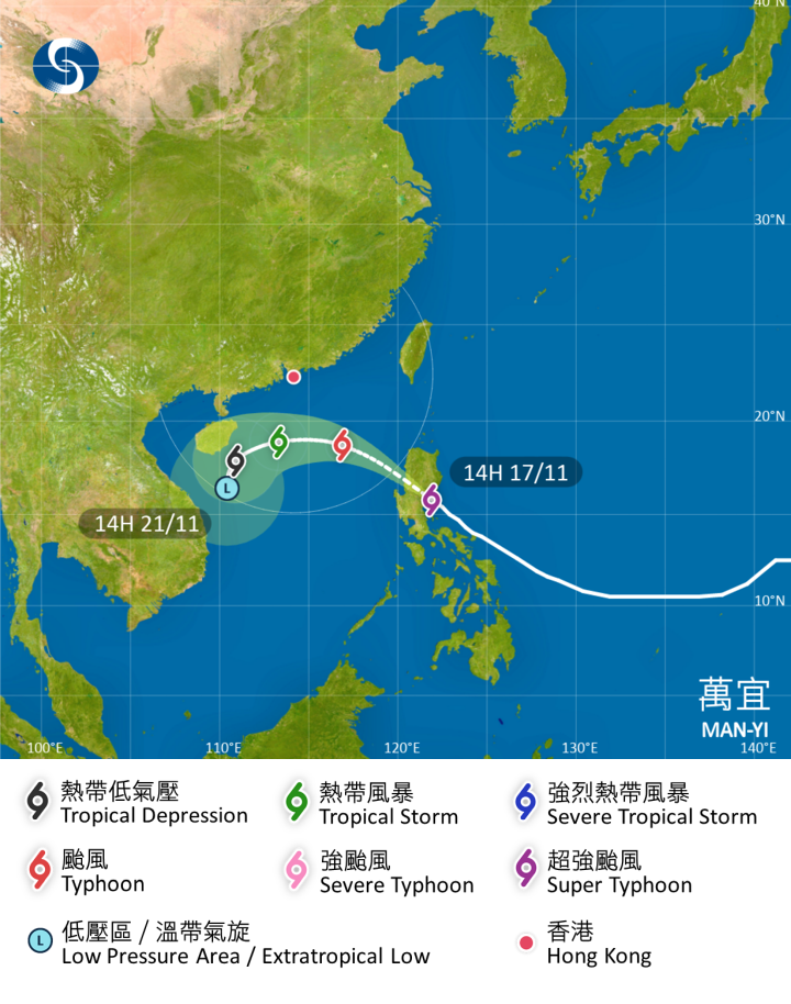 天文台表示,預料「萬宜」會逐漸減弱,但隨着「萬宜」靠近廣東沿岸,及與東北季候風的共同影響下,星期二(19日)該區風勢頗大。是否需要在星期一晚至星期二初時發出更高的熱帶氣旋警告信號需視乎「萬宜」與珠江口的距離、其強度轉變以及本地的風力變化。