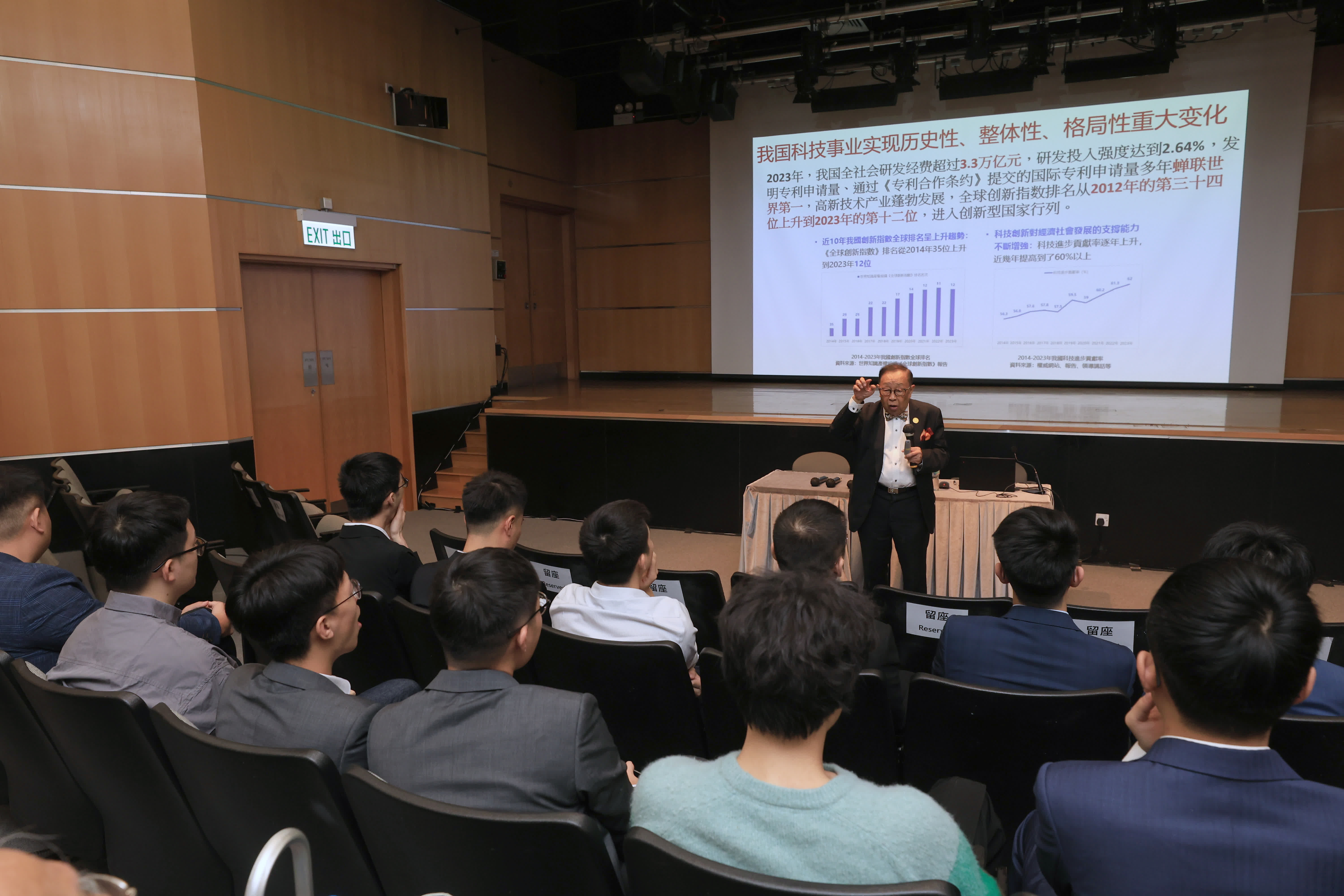今日講座由特區政府弘揚中華文化辦公室及香港大公文匯傳媒集團合辦,陳清泉以「國家科技成就與能源、汽車革命新征程」為題在香港歷史博物館作分享。他引用數據指,2023年我國全社會研發經費超過3.3兆元;在發明專利申請量及透過《專利合作條約》提交的國際專利申請量方面多年來居世界之冠,高新技術產業蓬勃發展;全球創新指數排名從2012年的第三十四位上升至2023年的第十二位,正式躍升為創新國家之一。