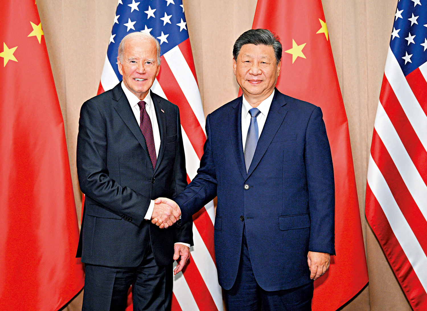 大公報據新華社報道:當地時間11月16日下午,國家主席習近平在利馬同美國總統拜登舉行會晤。習近平強調,中美是兩個大國,難免有些矛盾分歧,但不能損害彼此核心利益,更不能搞衝突對抗。一個中國原則和中美三個聯合公報是雙邊關係的政治基礎,必須恪守。「新冷戰」打不得也打不贏,對華遏制不明智、不可取,更不會得逞。台灣問題、民主人權、道路制度、發展權利是中方的4條紅線,不容挑戰。這些是中美關係最重要的防護欄和安全網。