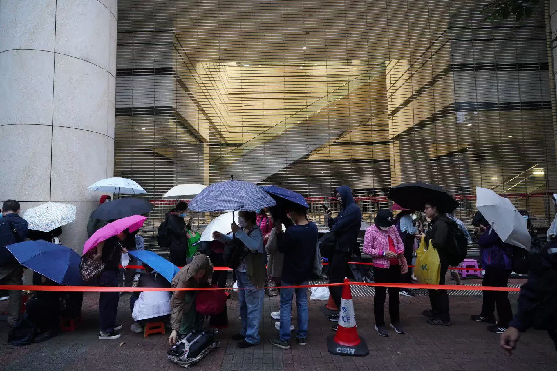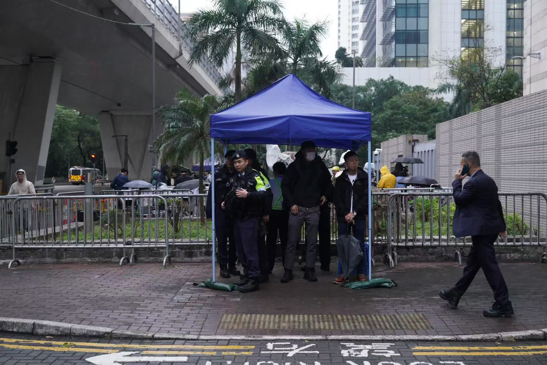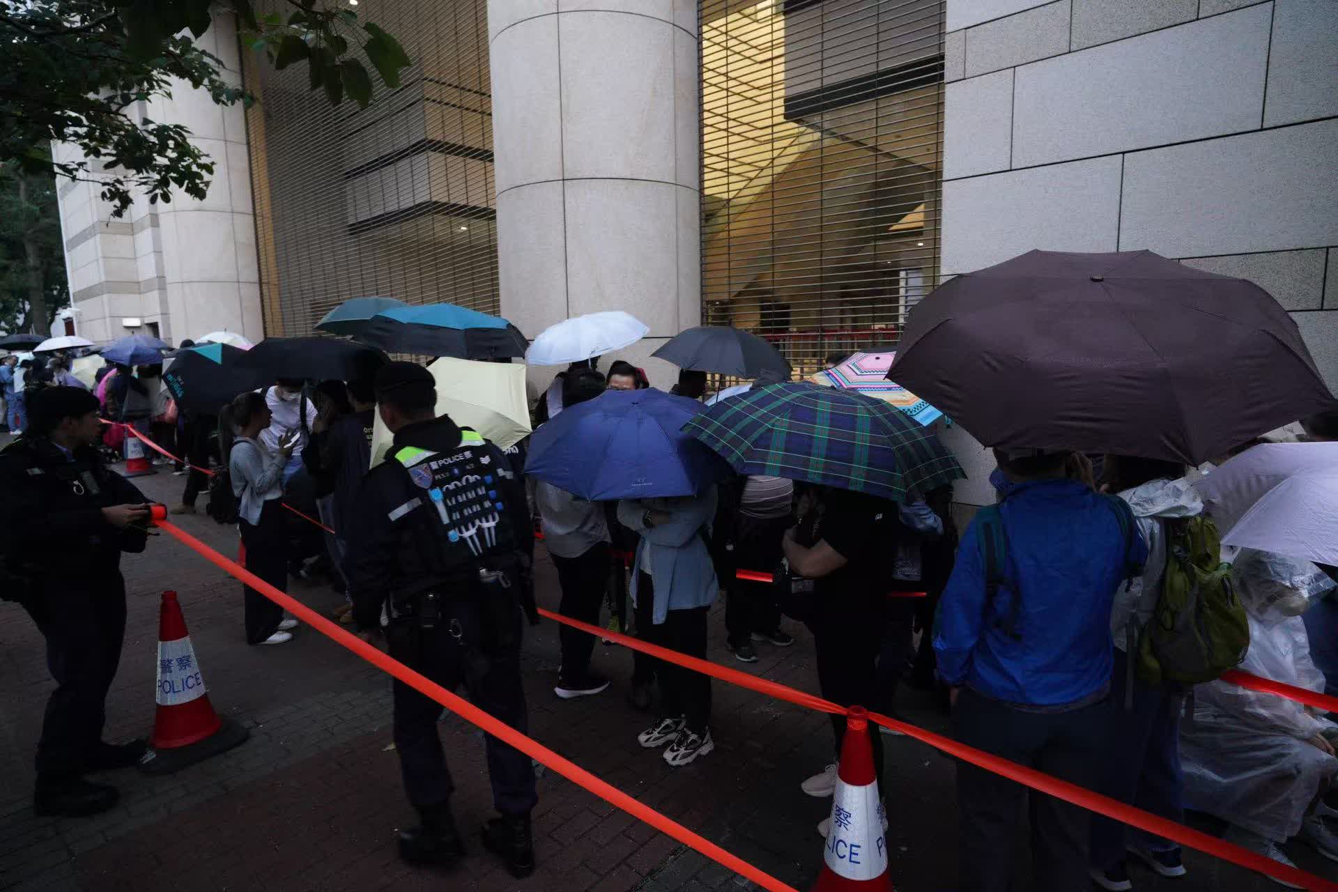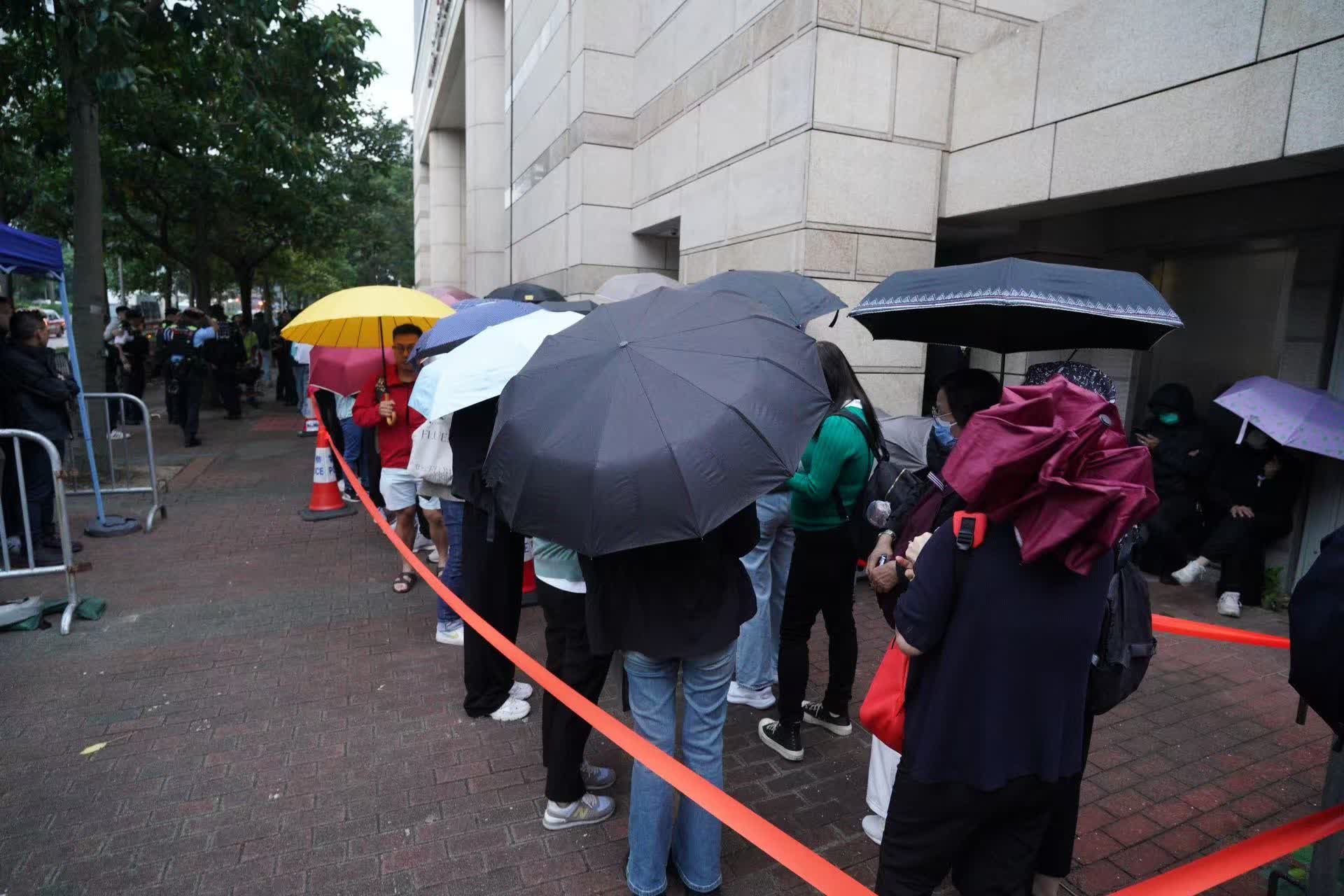 早於上周五(15日)起,已有數十人開始在法院外用物件排隊,不少傳媒亦用摺櫈、膠櫈等物件「霸位」。至昨日中午後,法院外已出現欲取入場籌的人士在排隊「坐等」取籌;至傍晚,等候人龍增至40多人,秩序良好。