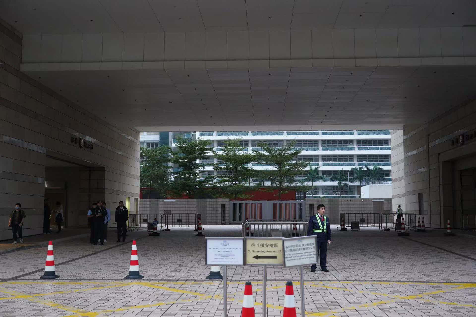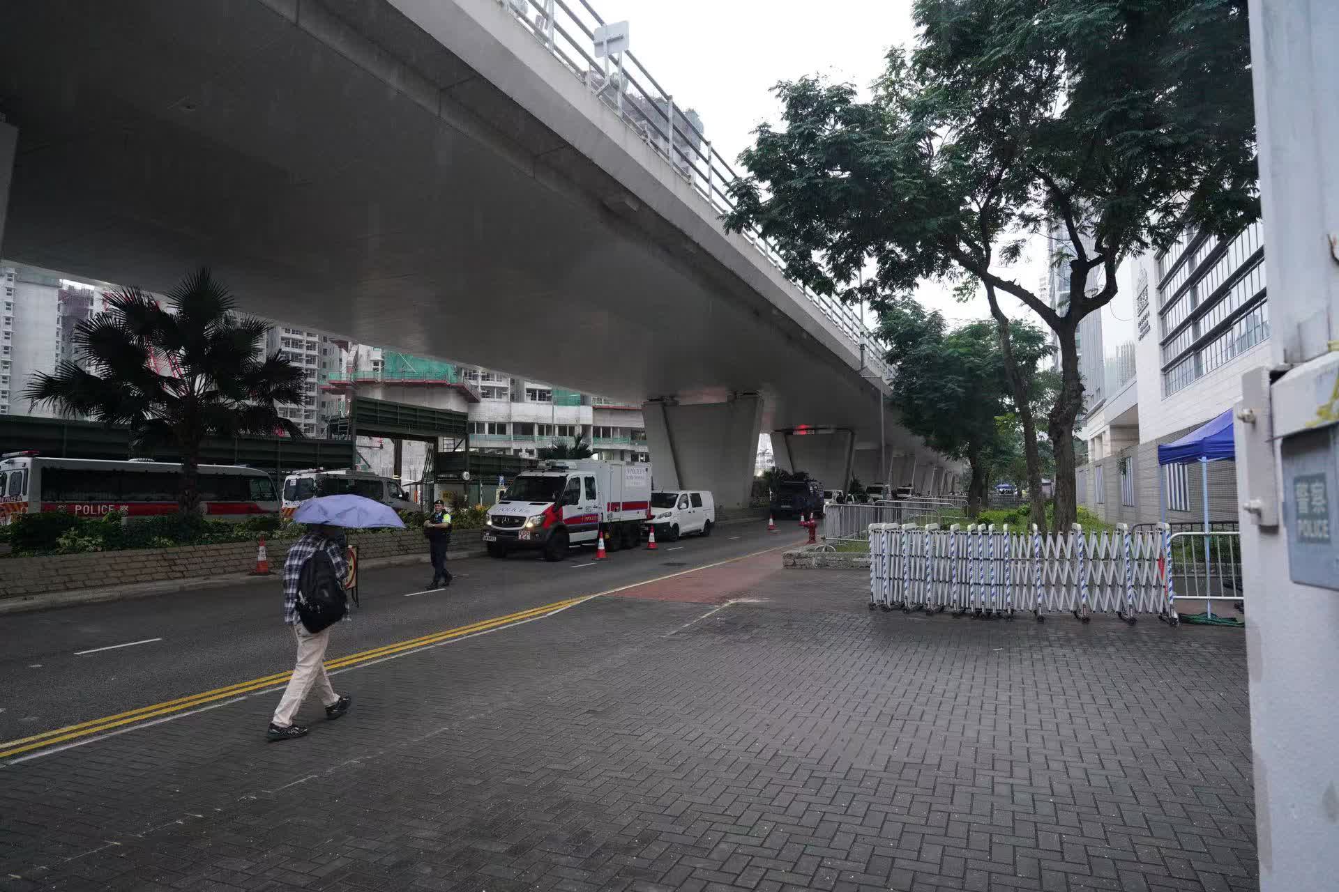 大批警員自前日始已到場駐守。昨日現場所見,警方在法院大樓外的行人路旁,放置了鐵欄和防止車輛衝擊的設備,以及大批備用鐵馬;「劍齒虎」亦停泊在法院對開的通州街戒備,通州街行人過路處臨時封閉。多名穿上戰術背心的警員亦於法院對開行人路布防;便衣警員則在附近巡視。附近的馬路設有路障,所有路經法院的車輛都要慢駛,部分更被截停檢查。