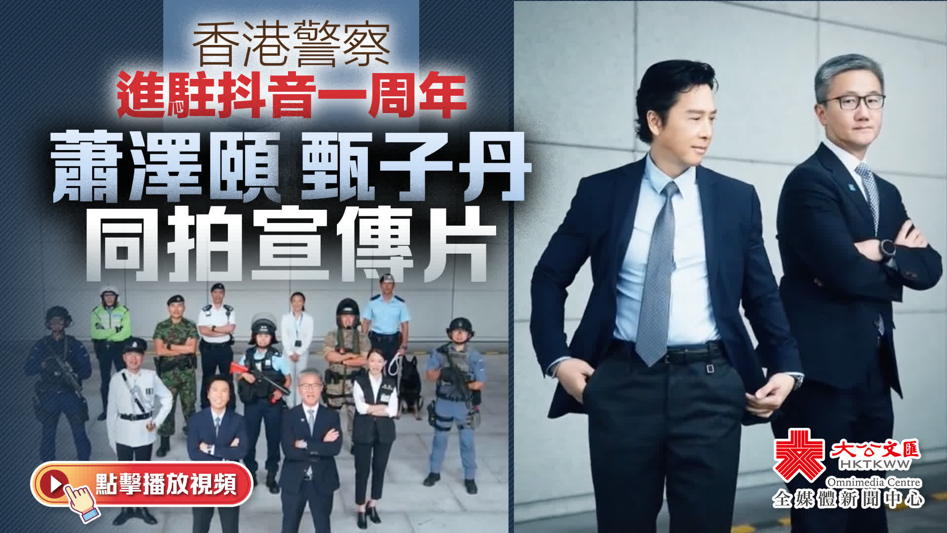 大公文匯全媒體報道,香港警察今日(19日)入駐抖音一周年。警務處處長蕭澤頤特別與武打巨星甄子丹合作拍片宣傳,回顧過去一年所拍攝的警隊不同部門,包括警犬隊、機動部隊、護旗方隊以及反恐特勤隊等等,一展香港警察的風貌。