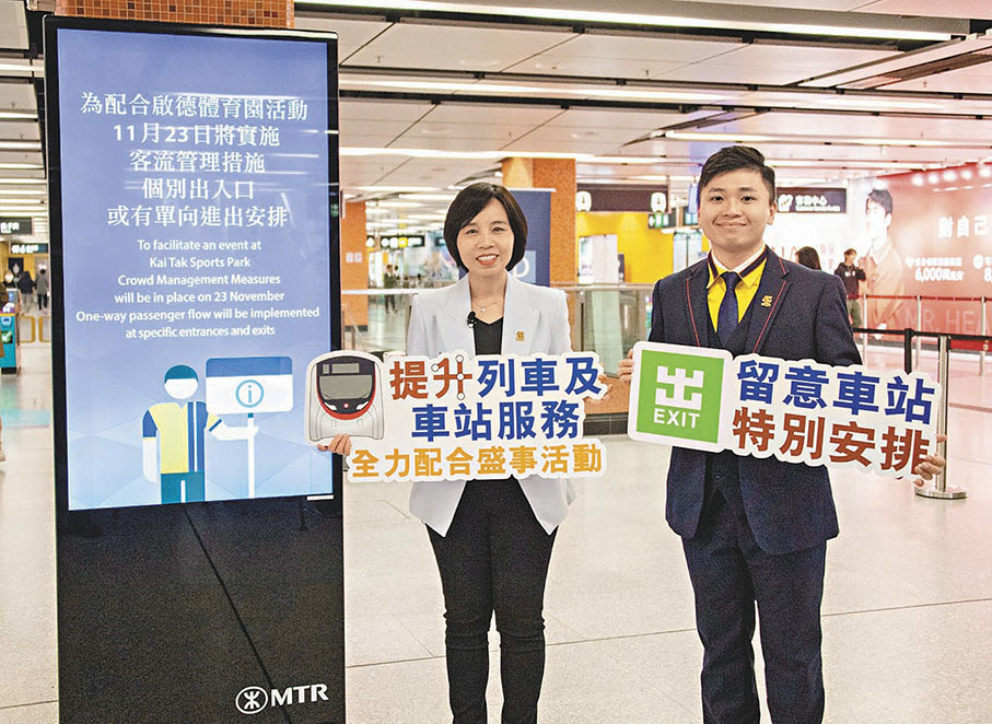 港鐵車務營運及本地鐵路總管李婉玲表示,早前已安排不同措施配合,包括在車站全面提升出入閘機、增加大型提示,會按照規模及性質調整安排,全力配合。在客流管理措施方面,港鐵宋皇臺站及啟德站會照常營運,但在演練期間,個別入口會作單向安排,其他入口可正常進出。當日港鐵會加派職員,提供特別指示及加強廣播。屯馬線的班次亦加密至上午繁忙時間密度。