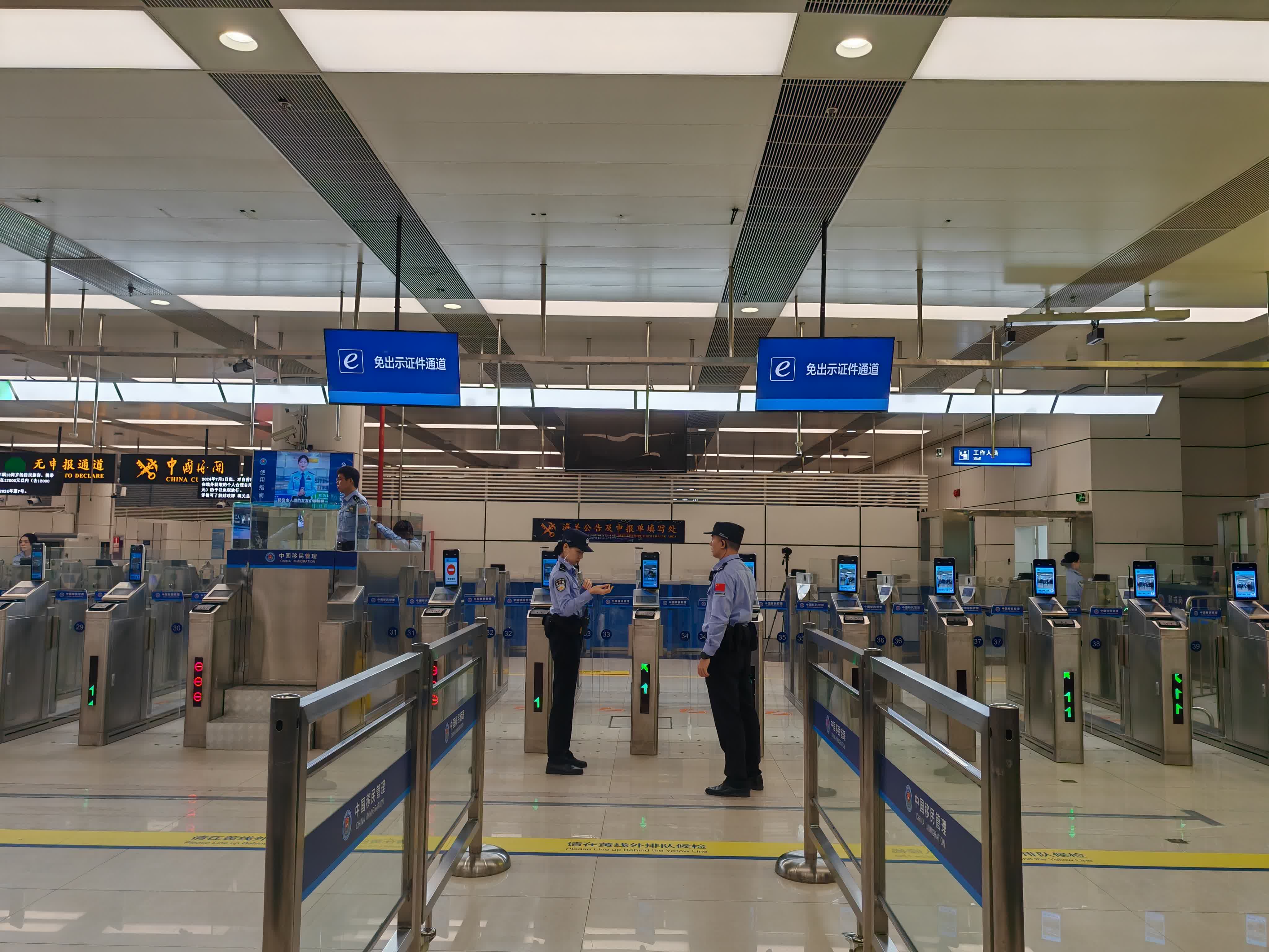 大約11時,大公文匯全媒體記者就從深圳灣口岸過關內地。由於屬於非繁忙時段,所以排隊過關人流不多,記者特意挑選有「免出示證件」的通道過關,體驗「免出示證件」與「出示證件」的分別。