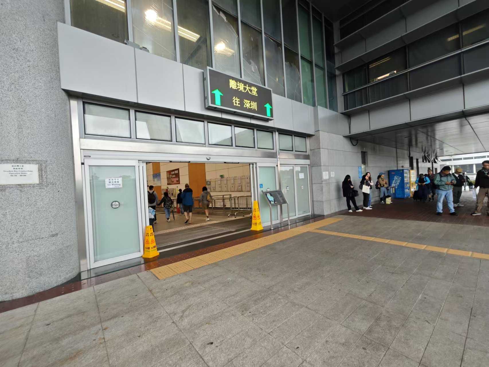 記者準備過關時,發現幾乎不需排隊。當記者到機器面前時,站了在「刷臉」鏡頭前數秒未有反應,關口人員叫記者稍等,之後再等待幾秒就成功「刷臉」。隨後記者觸碰屏幕確認個人資料,就成功通過了;之後如常在第二度閘前按下指紋及再確認面孔,大體順利地過關到內地。