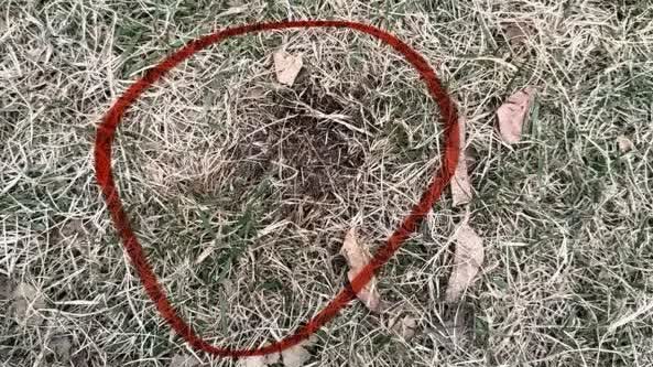 李女士表示,當晚兩隻狗相繼出現症狀,「燒賣」起初並未直接表現出異常,但凌晨3點開始發病,症狀與「烏冬」完全相同。她透露,事發時「烏冬」曾在草坪上吃過一塊顏色異常的黑草。根據李女士提供的照片,涉事草地中部分草呈黑色,與周圍草叢的顏色不同。她強調,平日她常帶愛犬前往該廣場草坪,尤其晚上10點半後,有不少居民也會在此處遛狗。