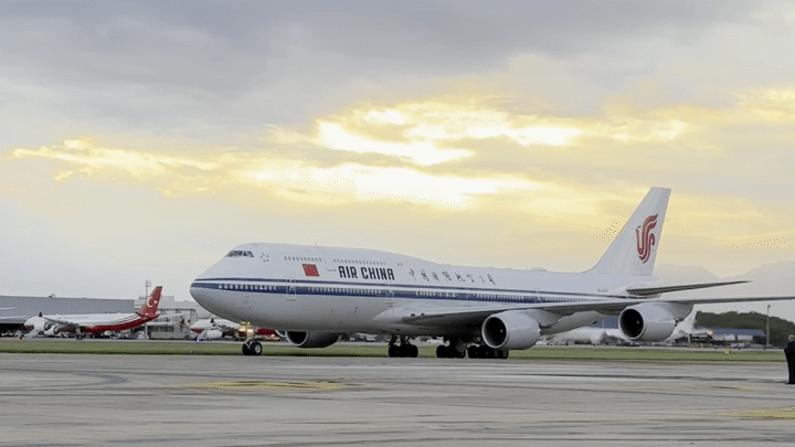 17日下午,習近平乘專機抵達里約熱內盧加里昂空軍基地時,巴西政府高級官員熱情迎接。巴西空軍號手吹號致敬,禮兵分列紅毯兩側。