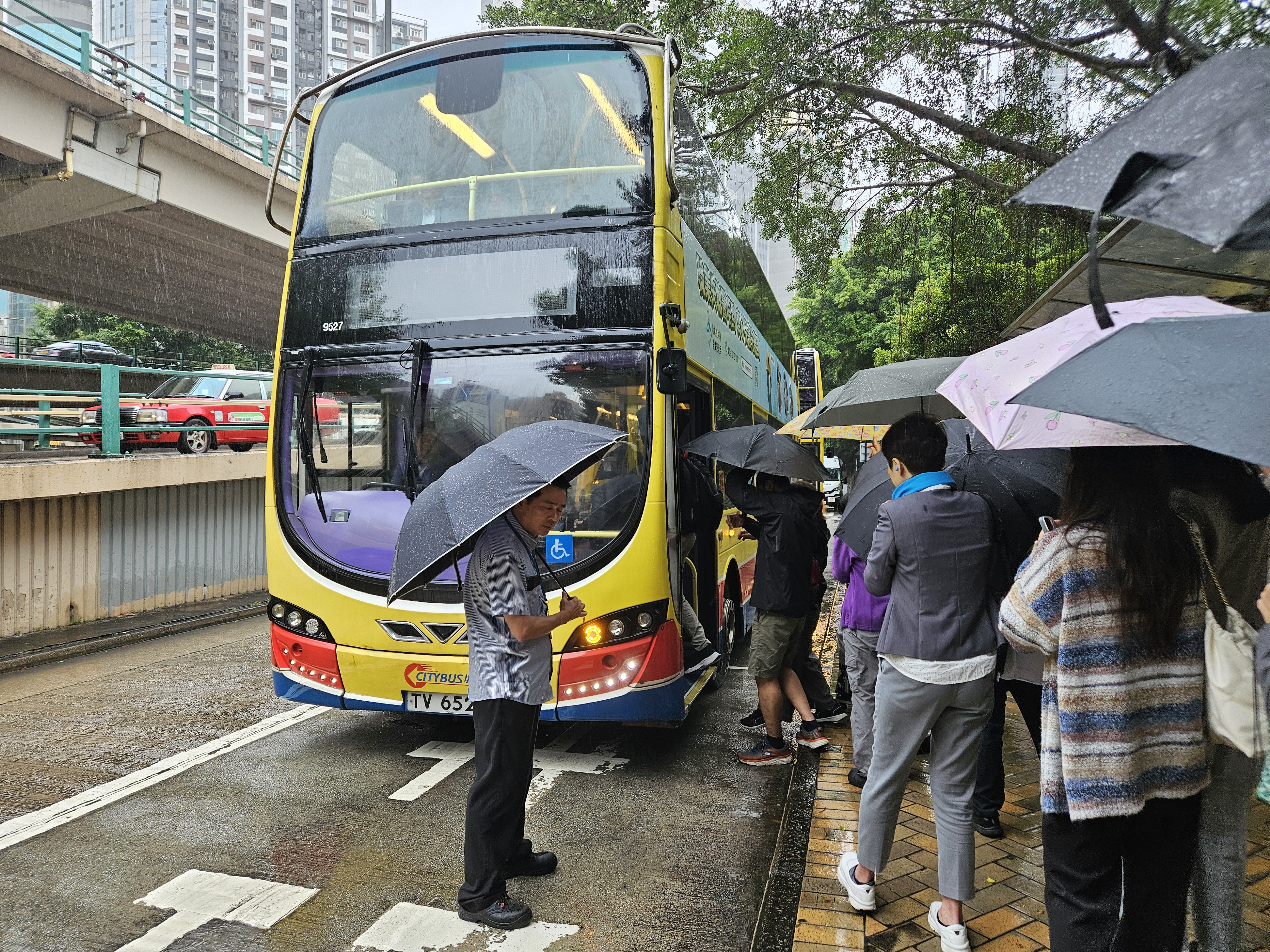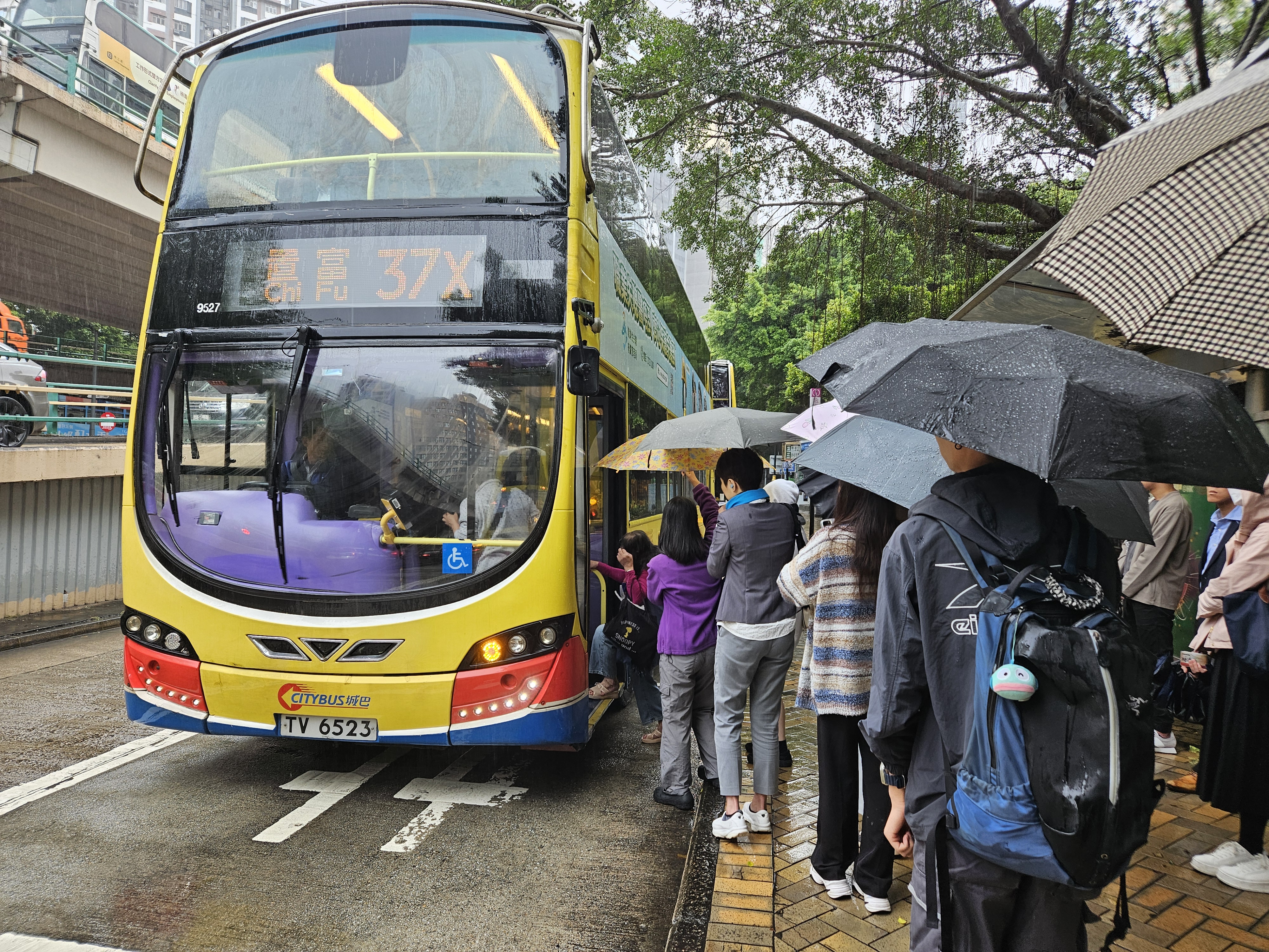 無言走下車,大家撐傘站在陌生的巴士站,看着停駐的車輛,迷茫等待命運的下一個大招,車長也是皺眉撐傘與大家一起等。耳旁不時聽到打工人的抱怨,「巴士這也敢加價」、「要遲到咗」、「倒霉」云云。好在下一班車在怨聲怨中來了,擠上車如罐頭裏的魚,但是一顆心也算落定。