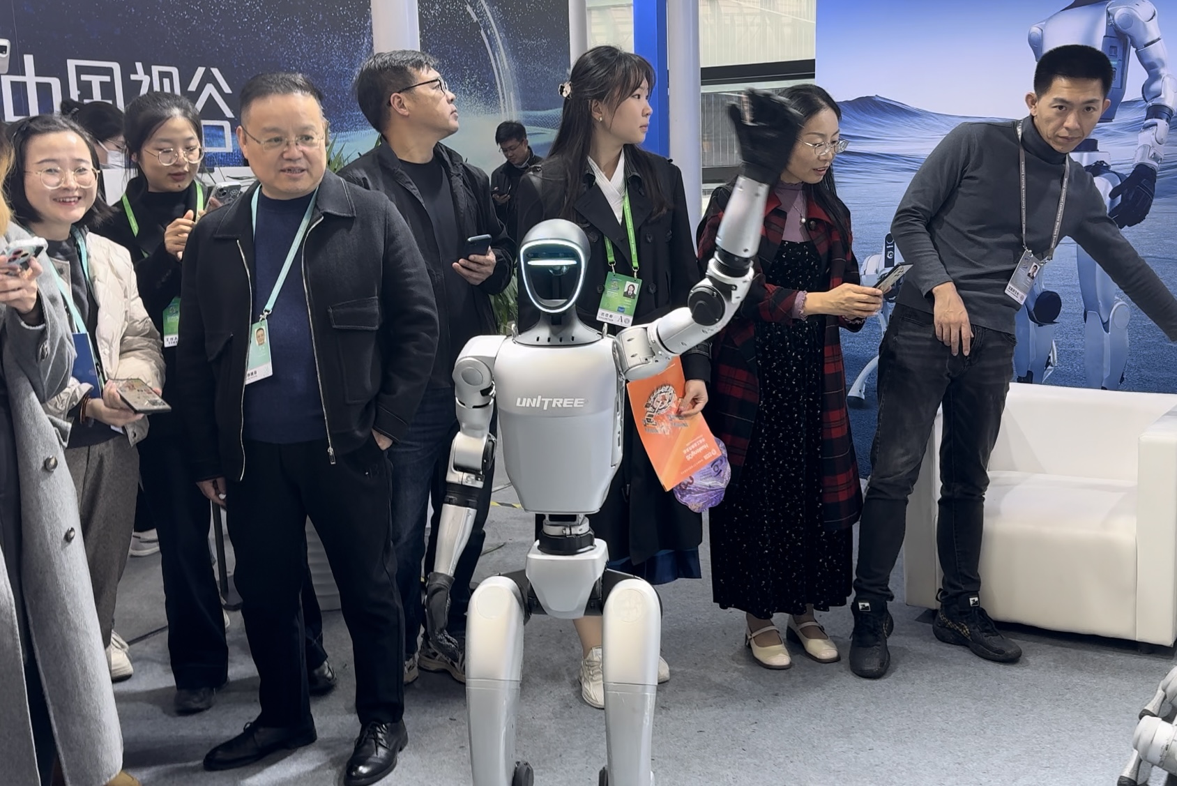 另一位採風交流團成員表示,博覽會上的人形機器人本領高強,令其印象最為深刻。「比如宇樹科技的『宇樹Unitree G1』人形機器人能根據參觀者發出的指令做出各種反應,連深蹲也不在話下,而浙江機器人創新中心的展位上的『領航者2號NAVIAI』機器人則在現場當起了售貨員,它能精準地從貨架上拿取參觀者所需的物品。」記者表示,此外還有上海傲鯊科技的腰部外骨骼設備十分吸睛,「這套設備主要用於工業生產,穿上它,50多公斤重的水袋也能輕鬆拎起,實在是很厲害。」