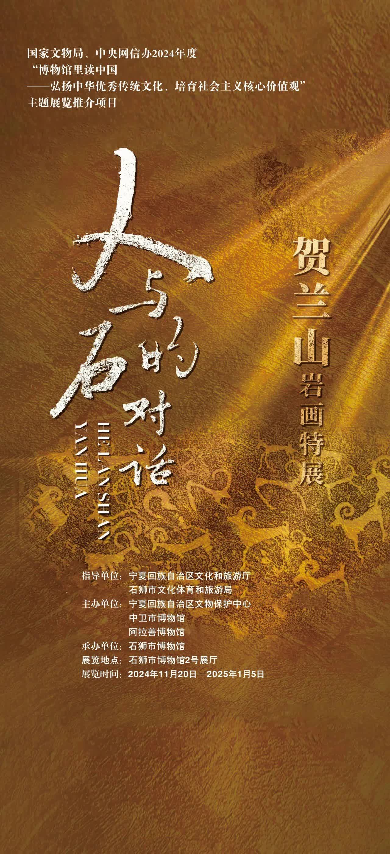 11月20日,由寧夏文物保護中心(岩畫研究中心)聯合中衛市博物館、阿拉善博物館主辦的「人與石的對話——賀蘭山岩畫特展」在福建省石獅市博物館開展,展期為一個半月。