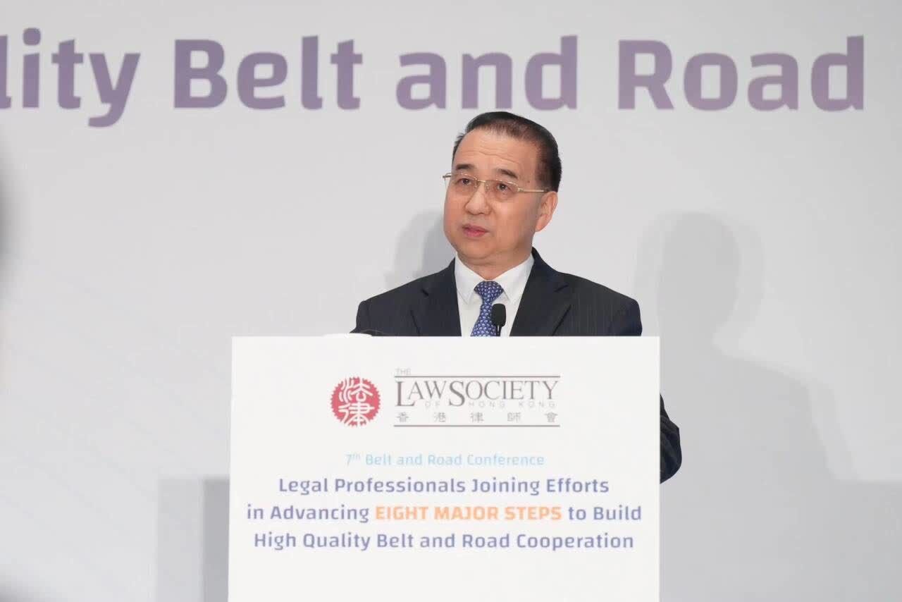 劉光源表示,「一帶一路」走的是攜手並進的陽光大道、開放合作的希望之道、文明互鑒的人間正道。黨的二十屆三中全會擘畫了以進一步全面深化改革開闢中國式現代化的宏偉藍圖,展示了進一步擴大高水平對外開放,為世界發展提供新機遇的堅定決心。香港作為共建「一帶一路」重要功能平台和節點,始終站在中國對外開放的最前沿。劉光源分享了三個觀點。一是築牢國家安全底線,夯實貢獻「一帶一路」的法治根基。《維護國家安全條例》的制定實施,標誌着香港進一步夯實法治根基,香港營商環境更安全、更自由、更開放、更可預期。事實證明,香港只有「安下來」「穩下來」,由治及興才有保障,助力共建「一帶一路」才有底氣。二是發揮普通法獨特優勢,展現助力「一帶一路」的香港所長。 香港高度對接國際經貿通行規則,可以助力「一帶一路」加速「法聯通」;爭議解決體系完備,可以打造「一帶一路」糾紛化解的「優選地」;「全球百大律所」半數以上在香港設有辦事處,可以成為「一帶一路」法律服務的「人才庫」。三是提供優質法治公共產品,擴大「一帶一路」「朋友圈」。近年來,國家出台多項重要發展戰略,支持香港建設亞太區國際法律及解決爭議服務中心,對外擴大法治合作、推廣法律服務。駐港聯絡辦將一如既往,全力支持香港法律界參與共建「一帶一路」,融入國家發展大局,用自身所長貢獻國家所需。