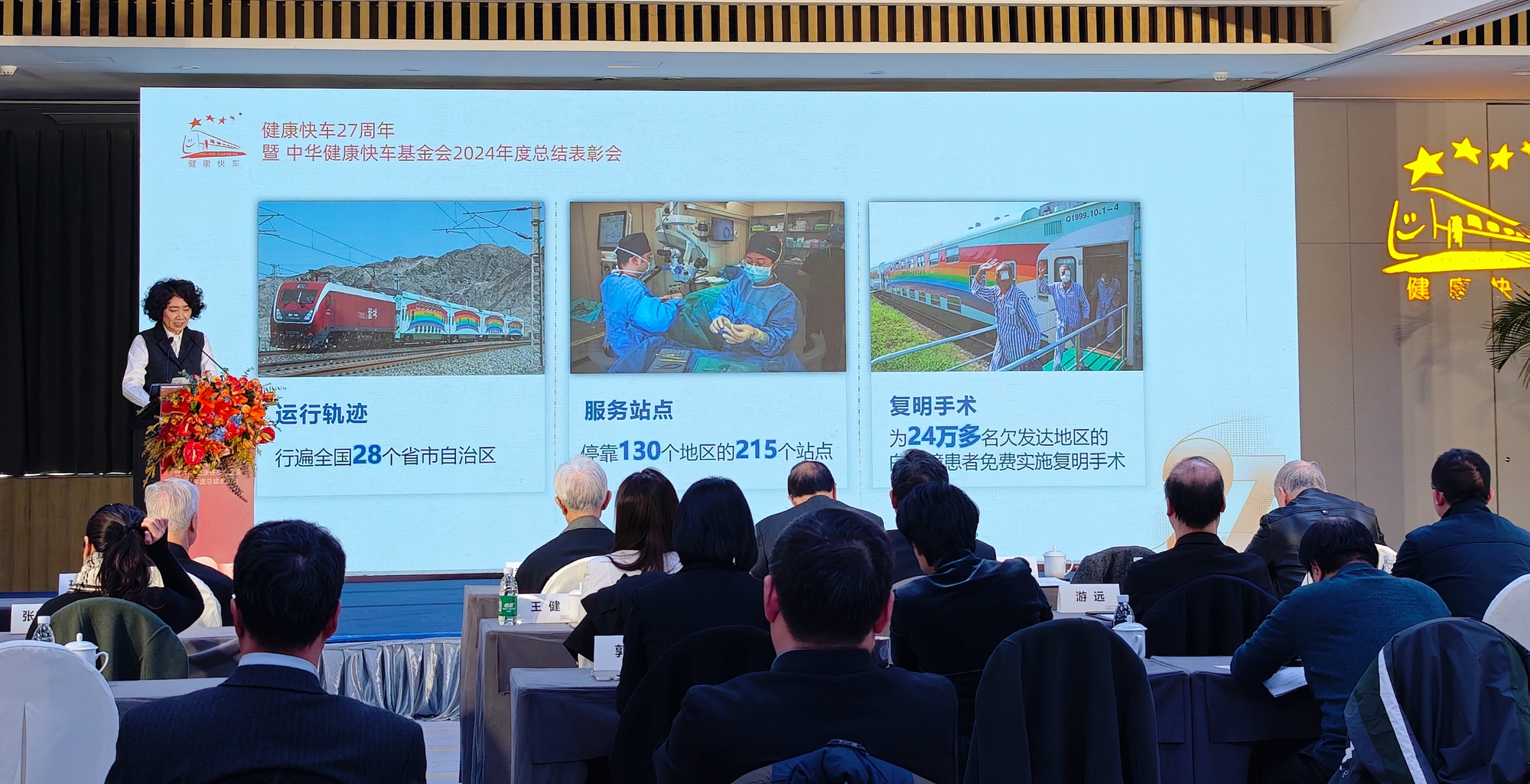 據中華健康快車基金會秘書長郭偉介紹,2024年,健康快車「香港光明號」和「中國石化光明號」分別前往新疆巴州、吉林白城、山東臨沂,河南駐馬店、甘肅定西和江西撫州等6個省份,為當地有需求的百姓提供免費的白內障復明手術。目前,兩列火車醫院仍在山東臨沂和江西撫州開展工作,預計全年將有6000名患者得到「健康快車」的免費救治。