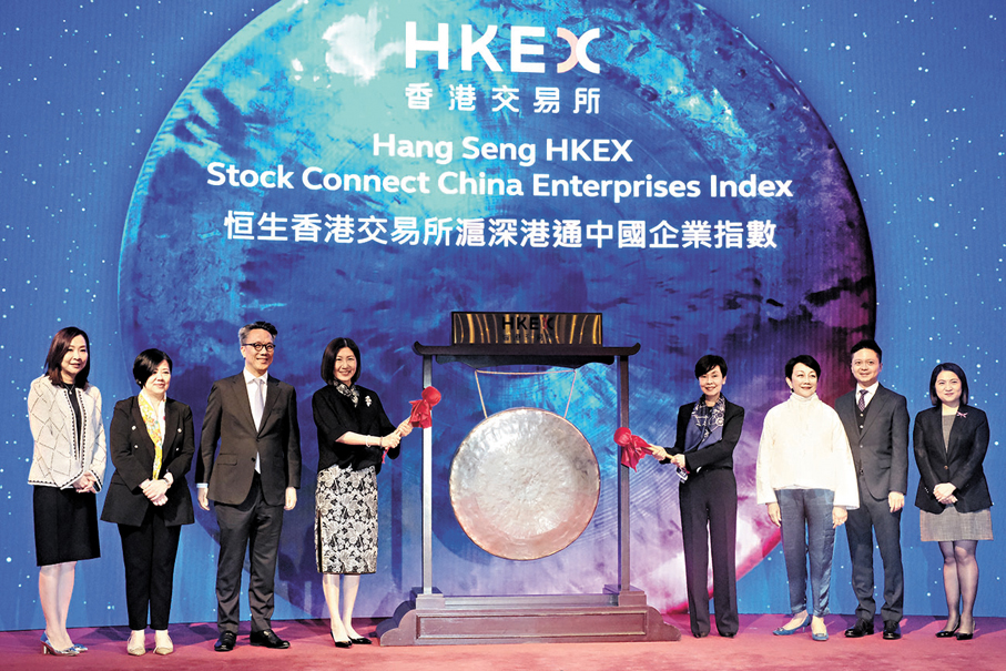 港交所昨與恒生指數公司合作推出的「恒生香港交易所滬深港通中國企業指數(SCCEA Index)」,並於昨早開市前舉行敲鑼儀式。陳翊庭表示,SCCEA指數是一個新工具,為中國內地和香港的投資提供更多選擇和機會。自10年前滬港通推出以來,內地和香港已經發展了很多互聯互通項目,對於連接中國和世界其他地區產生了巨大影響,讓國際投資者分享中國的成功故事。SCCEA指數是港交所與恒指公司的首個聯合指數,是合作和創新的最新例子,為投資者提供了全面和權威的基準,以了解不斷變化的中國成功故事。
