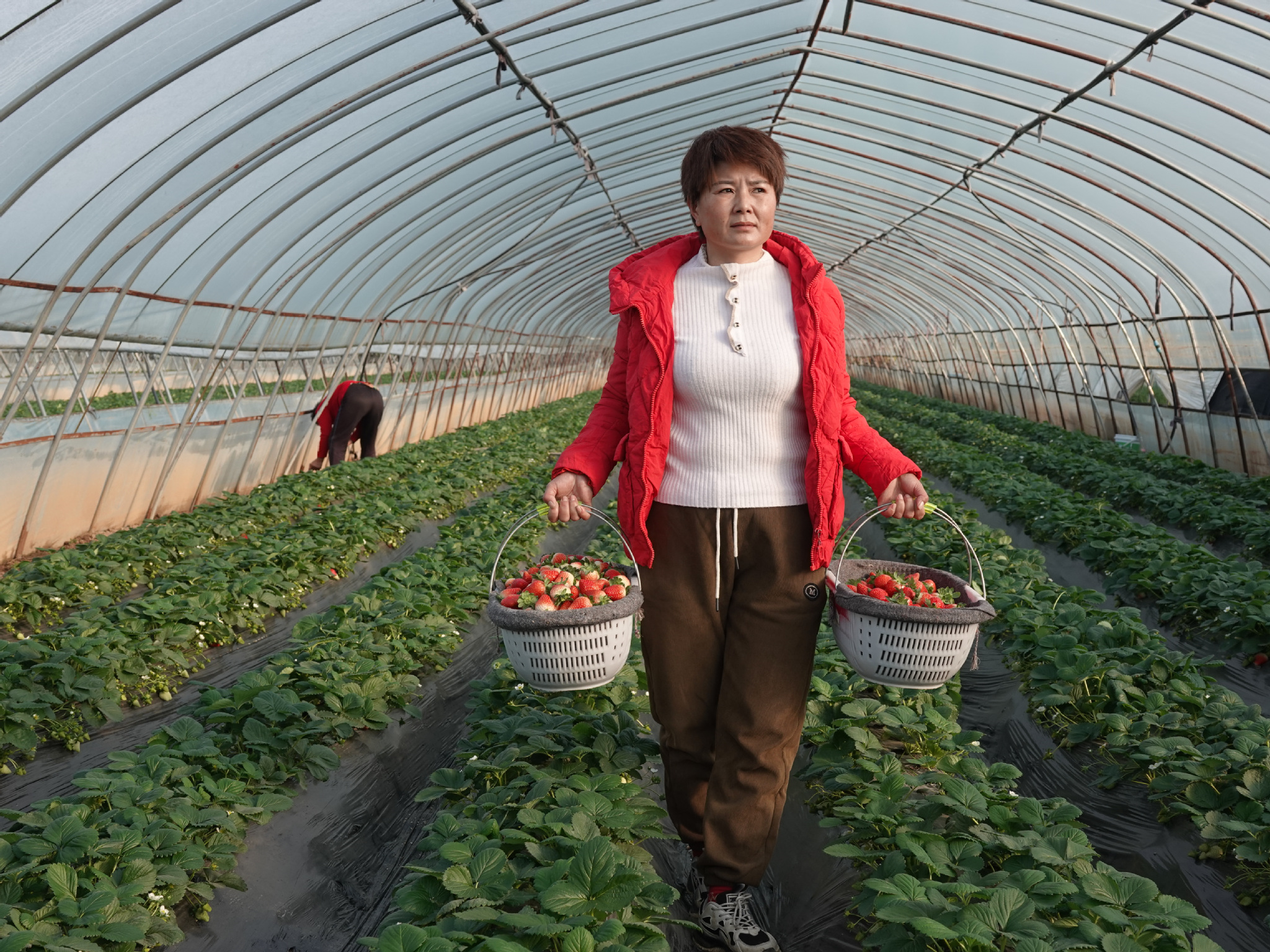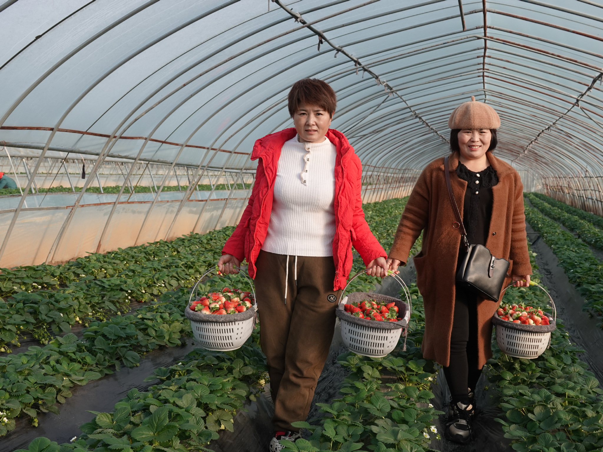 「今年是俺種草莓的第5個年頭。新引進了天仙醉、章姬、奶油、白雪公主等新品種,這些草莓果型好、色澤勻、口味甜,備受市場青睞。」王高宏的妻子李麗說,草莓現在已經進入了盛產期。整個採摘期從今年的11月持續到明年5月初,預計每畝大棚產量1400公斤左右。
