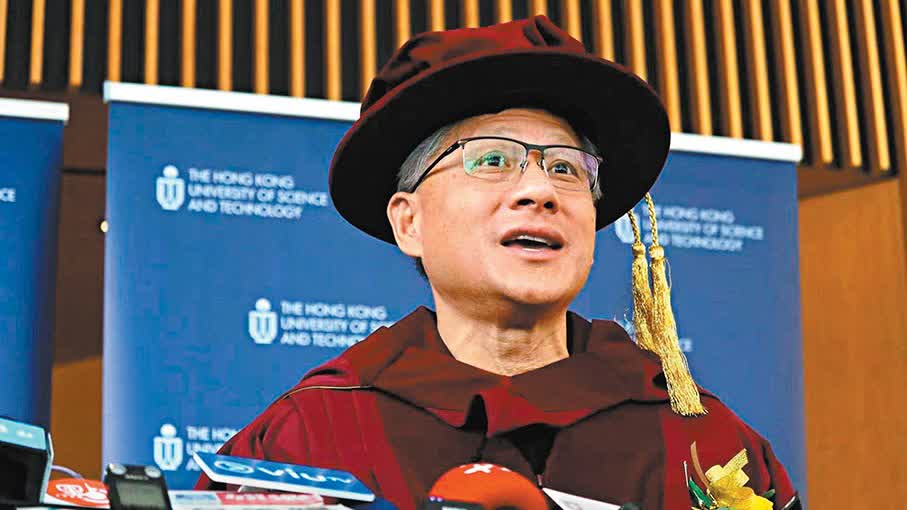 (香港文匯報記者 金文博)全球步入人工智能(AI)時代,AI引領着科學和社會各方面的革新,香港以至全中國於AI發展和研究佔據了關鍵位置。人工智能晶片龍頭企業NVIDIA(英偉達)創辦人暨執行長黃仁勳,昨日獲香港科技大學頒授榮譽博士學位。他在頒授典禮及其後的訪問分享時,讚揚香港的AI發展屬世界級,研究備受認可,使香港成為一個「超凡(extraordinary)」的地方,並認為香港和內地在AI領域的研究正處於世界領先地位,預期該情況會持續下去,在未來沒有任何事情能夠阻擋。他又提到,英偉達在25年前已進軍中國,受益於粵港澳大灣區的發展,對能夠見證中國形成令人驚嘆的科技產業,他感到榮幸。
