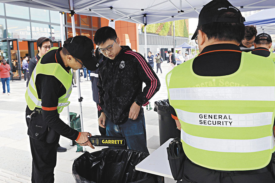 特區政府昨日動員約4,500名公務員及500名社區人士扮演觀眾,進入啟德體育園青年運動場。場外設兩個安檢區,分別服務由啟德站和宋皇臺站前往運動場的人士,前者設4個安檢通道,後者設12個,包括兩個特快通道供無攜帶隨身物品的人士使用。