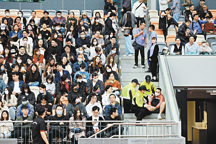 安檢過程大致順暢,工作人員提醒觀眾提前取出鑰匙、手機等金屬物品,攜帶的刀具、水樽需要當場棄置,大型行李則可在指定地點寄存。坐輪椅人士進場會經過特別通道,陪同人員亦需進行安檢。記者現場觀察,大部分攜帶小型手袋的市民可在約一分鐘內完成檢查。