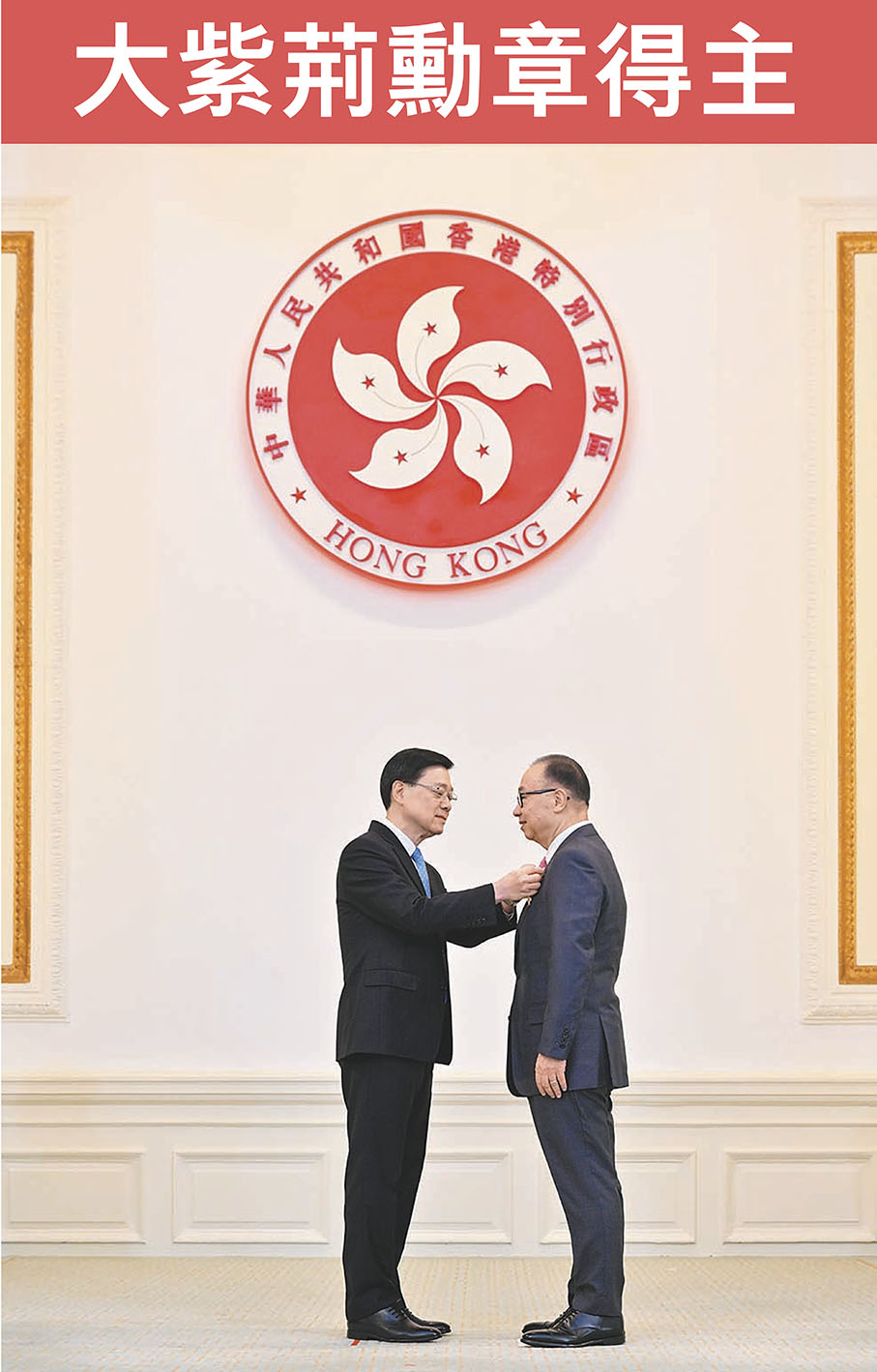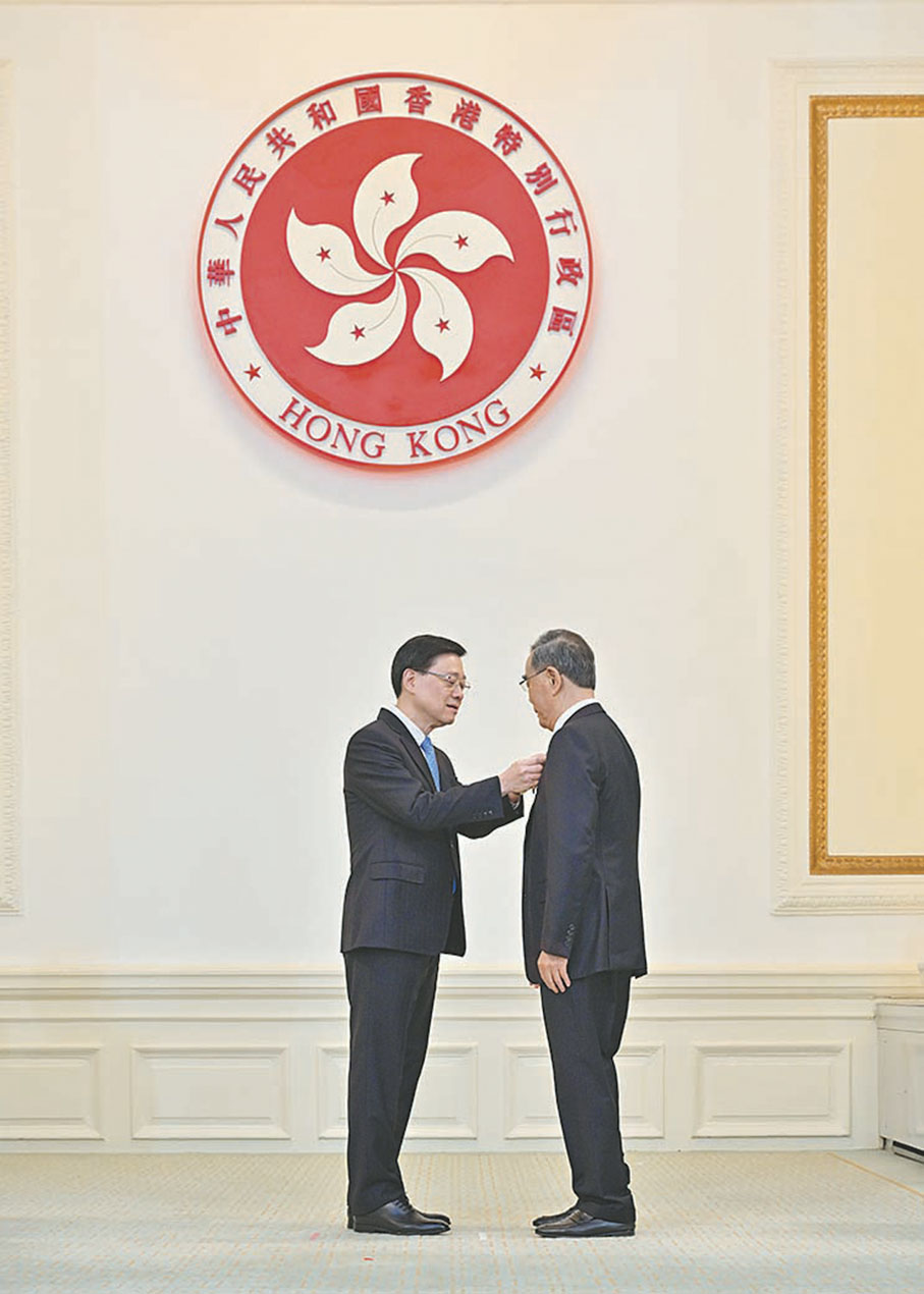 (香港文匯報記者 黃子晉)香港特區政府昨日於禮賓府隆重舉行授勳典禮,行政長官李家超在典禮上頒授勳銜及獎狀予受勳人士。今年有5人獲頒最高榮譽大紫荊勳章,分別是行政會議非官守議員、立法會議員廖長江,內地和香港事務及國際政治評論權威學者劉兆佳,香港大學饒宗頤學術館館長李焯芬,企業家李家傑,香港福建社團聯會榮譽主席林樹哲。他們昨日接受香港文匯報訪問時表示,很榮幸自己能在「一國兩制」建設上略盡綿力。在目前由治及興的關鍵時期,他們會繼續在各自崗位盡力履行職責,攜手團結各界,助力香港實現良政善治,貢獻香港、貢獻國家。
