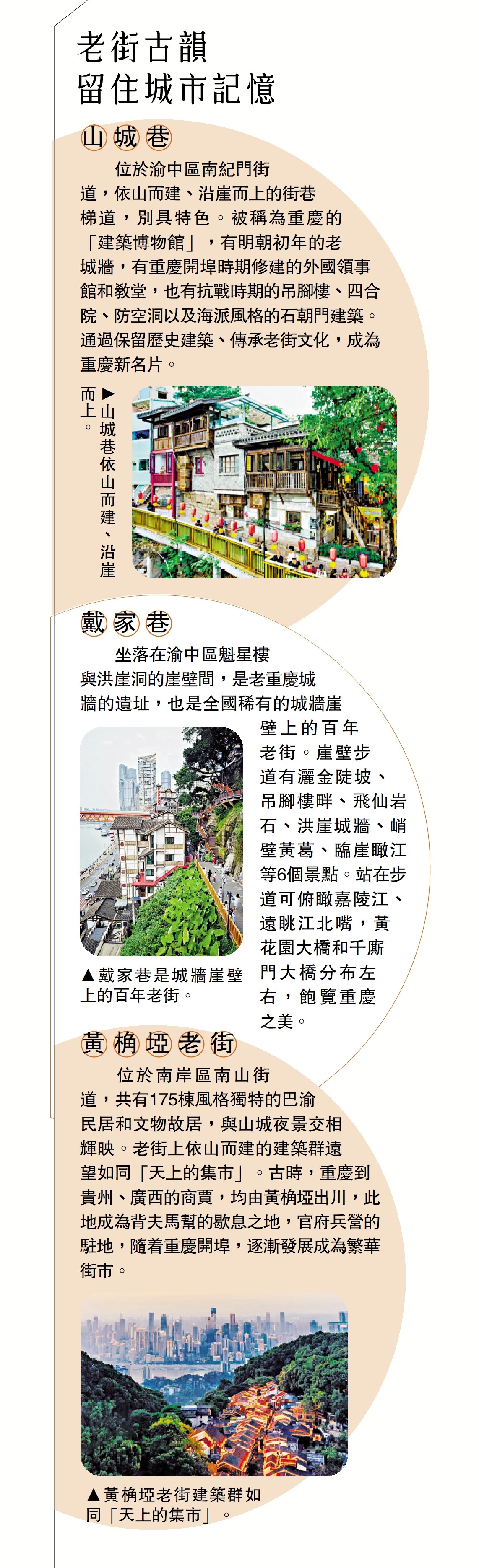 (大公報記者 韓毅)「以江為池,臨崖而築,山川潑墨,雲霞走筆。」董宇輝把重慶描繪得像一幅畫卷。重慶既是世界最大的山水城市,又是中國歷史文化名城,長江與嘉陵江在此交匯,以其獨特的地理特徵和豐富的文化底蘊,吸引無數遊客前往探索。沿山的步道、跨江的索道、穿樓的軌道……有人覺得它是8D的,也有人說它是魔幻的,無論是欣賞夜景、體驗都市繁華,還是品嘗美食、漫步山城老街,一起感受半城江水半城山滋養的重慶。