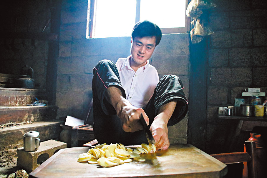 後來,陳茲方還幫助鄉親們銷售橙子。為了拍好視頻,陳茲方在果園裏背扛着甚至嘴咬着設備,尋找好的拍攝角度,時不時爬到樹上用腳擰下橙子、用水果刀削橙子,「一條視頻能幫助果農賣掉一千多單橙子,效果很好」。陳茲方說,2018年他和鄉親們一起賣掉了300多萬元土豆、橙子、玉米、臘肉等農副產品;2019年銷售額達400多萬元,受益的鄉親240多戶。