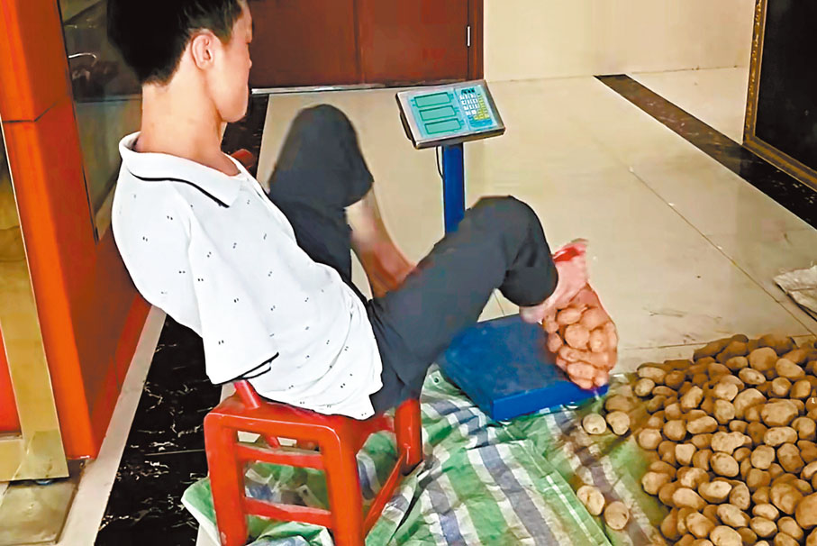 (香港文匯報記者 歐陽思柔 武漢報道)35歲的土家族青年陳茲方,一出生就沒有雙臂,父親早逝,與母親和哥哥相依為命。雖然身體殘疾,但他樂觀向上、不畏挫折,不僅學會用雙腳劈柴做飯、種地養豬,還憑藉一雙靈活的雙腳「逐浪」互聯網大潮。從找貨源到拍攝、剪輯、直播、打包、發貨「一人挑」,從經營淘寶網店實現年銷售額兩三百萬元(人民幣,下同),到轉型自媒體博主坐擁近200萬粉絲,陳茲方在接受香港文匯報訪問時直言不在乎被別人說「可憐」,也不要做「網紅」,陳茲方說自己是一個創業者,不斷學習、繼續努力,通過更加多樣化的視頻和渠道,和鄉親們一同富裕,「這是我的責任」。