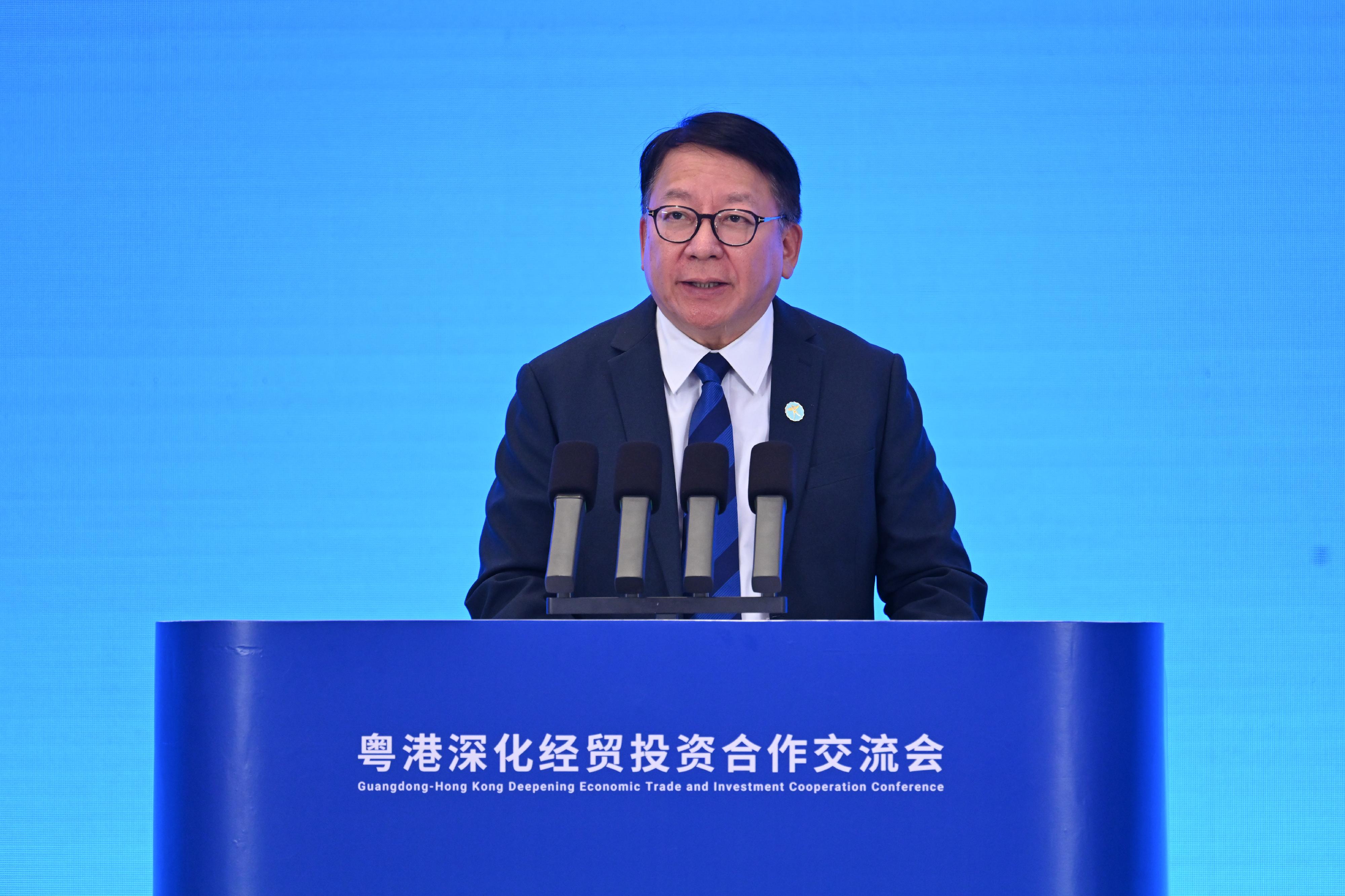 大公文匯全媒體報道,政務司司長陳國基今日(25日)在廣州出席粵港深化經貿投資合作交流會,他表示,今天的交流會匯聚了粵港兩地的政府領導和商界翹楚,是提升粵港兩地經貿投資更高水平合作的重要契機,對推進粵港澳大灣區建設,香港更好融入國家發展大局具有巨大意義。