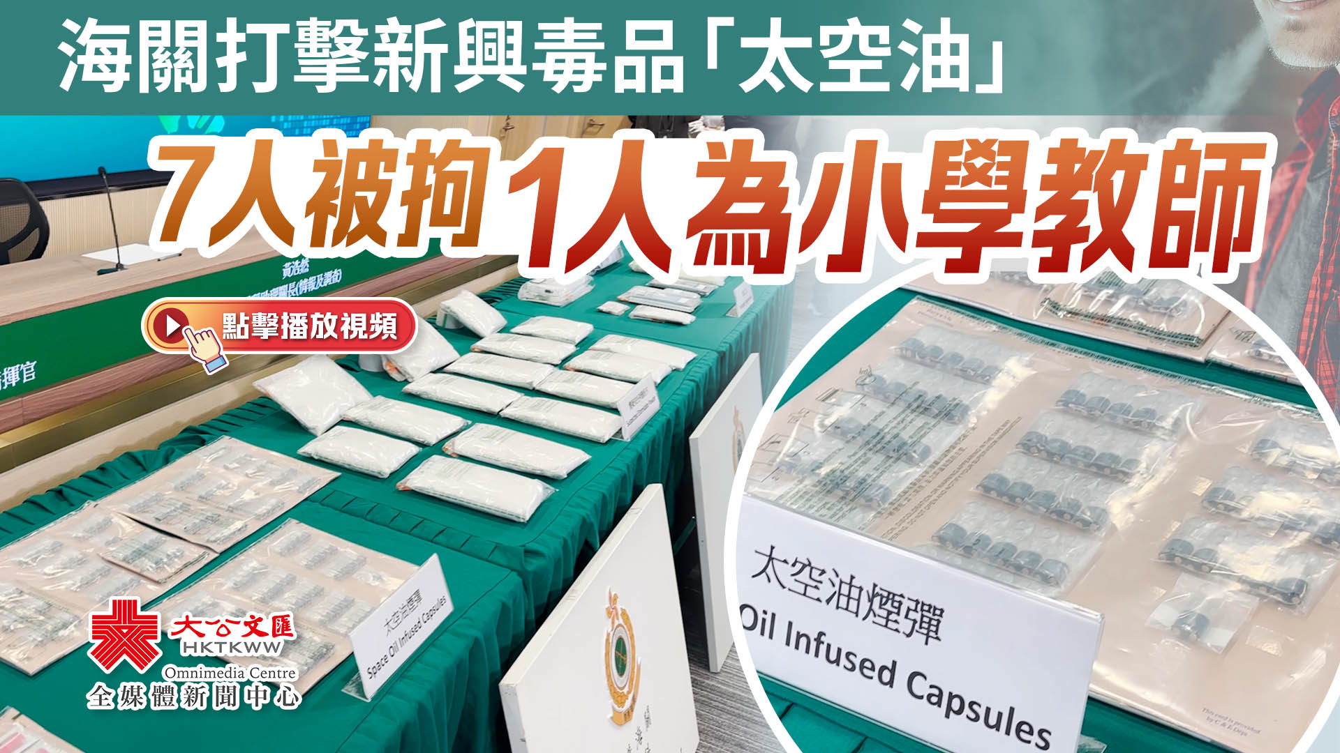 據介紹,香港海關本月針對俗稱「太空油」的新興毒品「依託咪酯」採取特別執法行動,檢獲16公斤依託咪酯粉末、191粒載有太空油的煙彈。行動中拘捕7人,年齡介乎23至48歲,被捕人包括一名小學教師,以及廚師、侍應等。