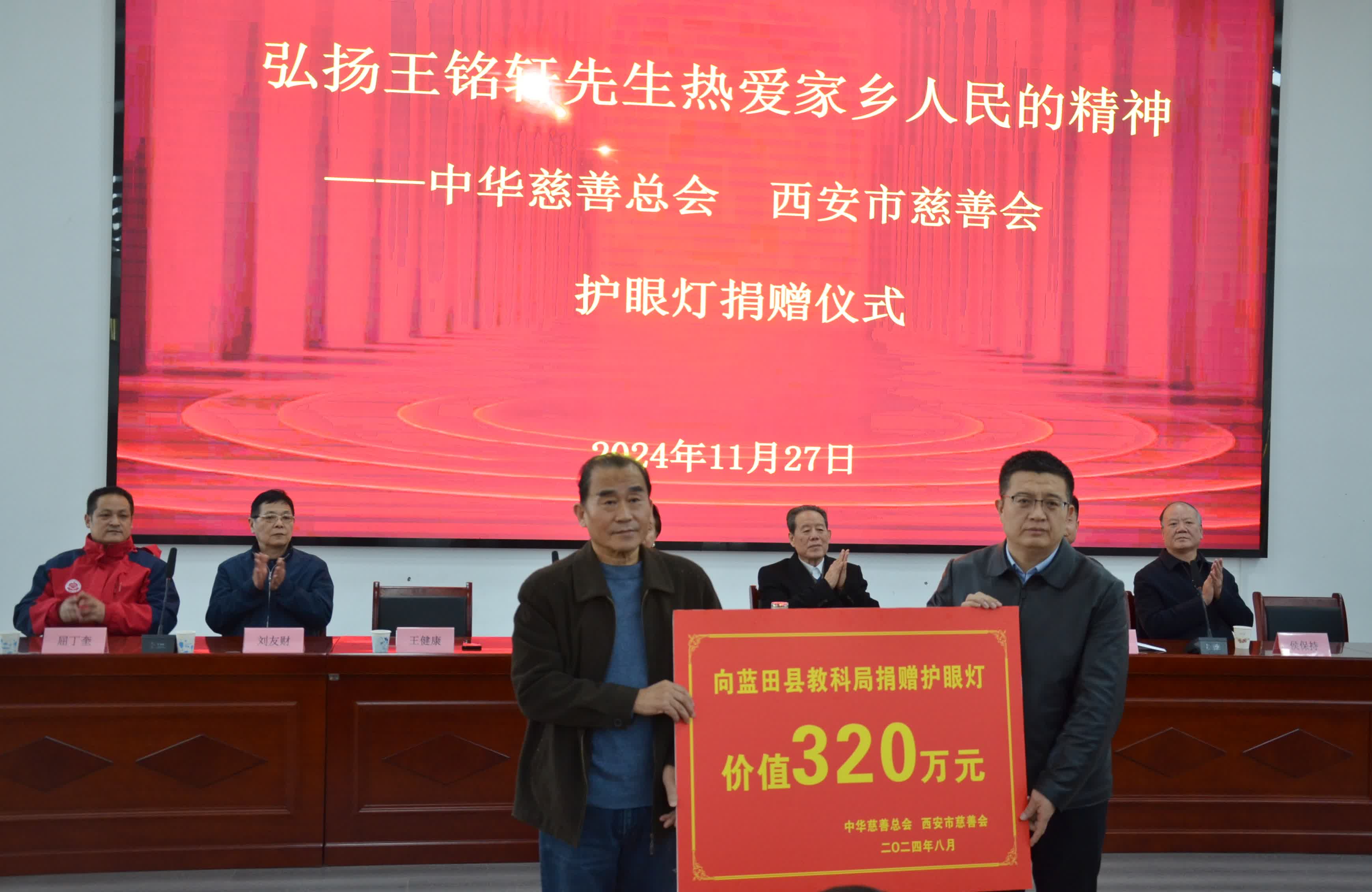 (大公文匯網記者張仕珍 西安報道)「以前我們用的是日光燈,經常閃爍,對孩子們的視力不好;現在教室裏全部換成了護眼燈,燈光柔和,有助於減輕長時間用眼帶來的疲勞,更好地保護孩子們的眼睛。」在西安市藍田縣芸閣小學,校長王亮向西安市慈善會會長朱智生介紹。11月27日,中華慈善總會誠信公益基金及西安市慈善會在芸閣小學舉行護眼燈捐贈儀式。據了解,在華斯美投資公司董事長、西安市慈善會專員宋英的引領下,此次中華慈善總會誠信公益基金聯合西安市慈善會,共向藍田縣捐贈了價值320萬元(人民幣)的護眼燈,惠及當地23所學校的一萬多名中小學生。