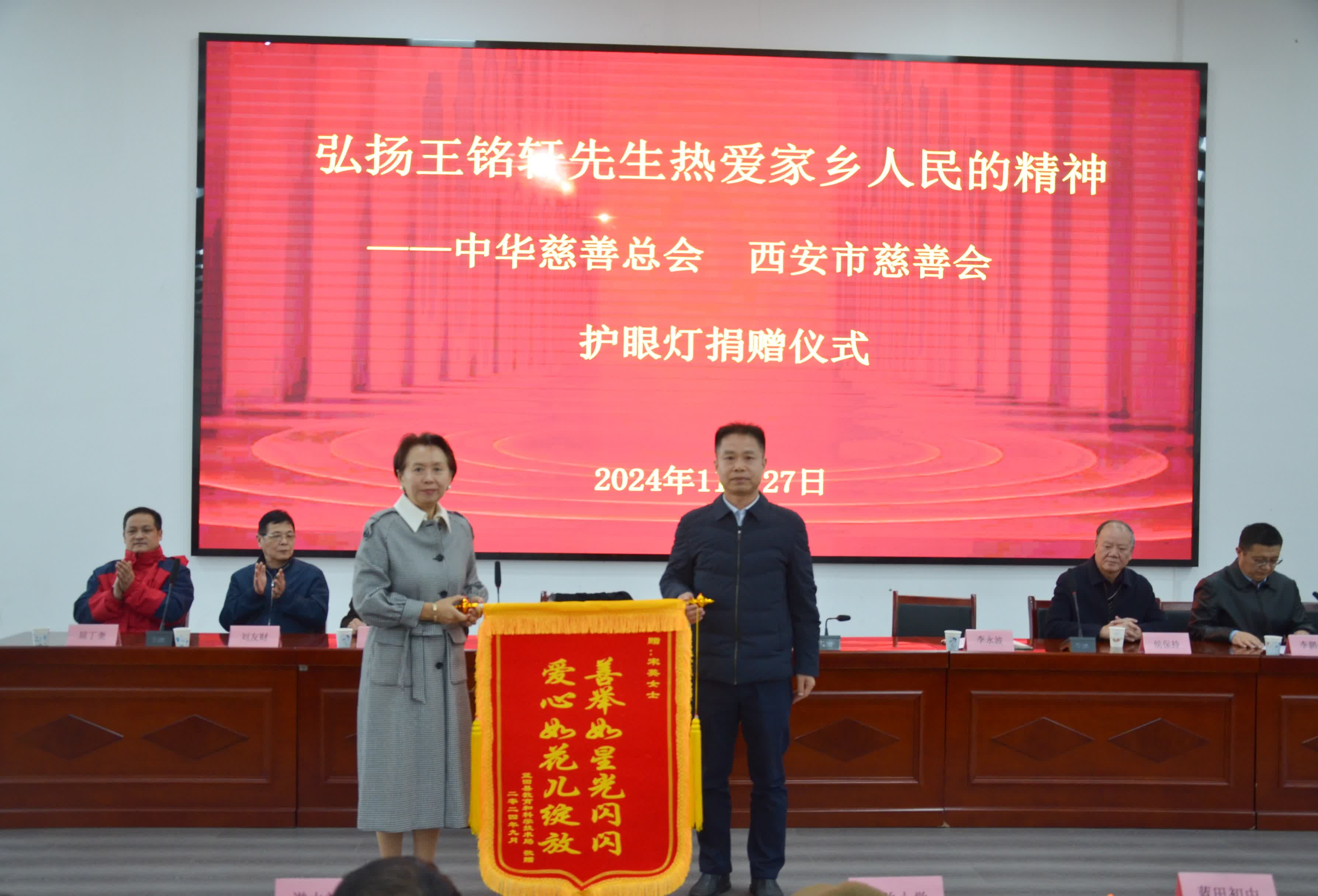 活動現場,西安市慈善會專員王健康向藍田縣捐贈了價值320萬元的護眼燈,藍田縣副縣長李永波向宋英頒發了錦旗。來自藍田縣工業園區幼兒園的師生代表亦來到活動現場,用精心編排的節目紀念王銘軒,並對此次愛心捐贈表示感謝。