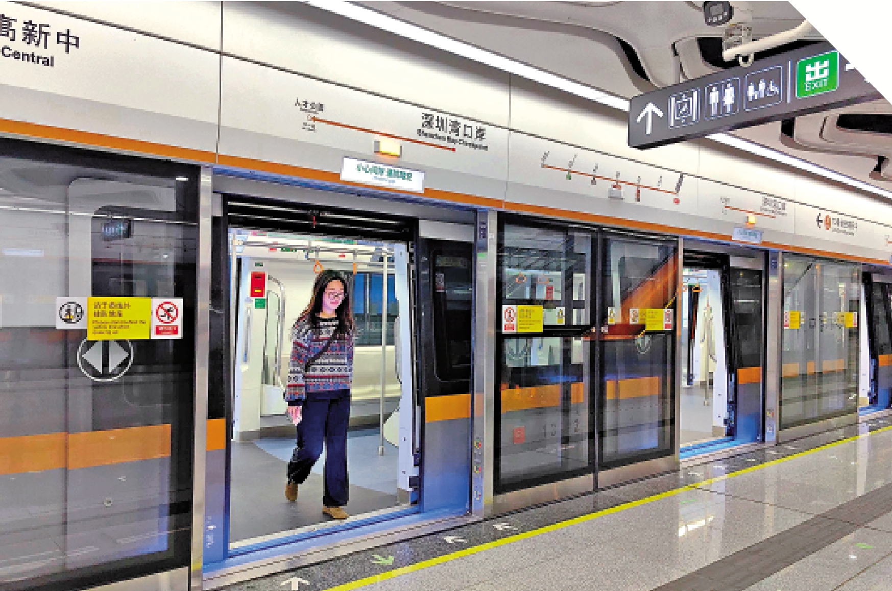 28日下午15時,記者從地鐵后海站L口入站,搭上了開往深圳灣口岸的13號線列車。該列車採用國際最高級別GoA4級全自動駕駛列車運行控制系統,配備「隨車醫生」,列車運行安全高效。