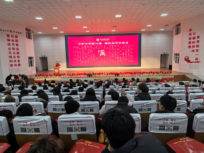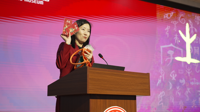 隨後,在新星職業技術學院,一場探秘中國文字的宣講活動精彩開講,該校師生在殷墟博物館宣講團的引導下共同欣賞了「大邑商都·魅力安陽」甲骨文情景劇展演。在宣講現場,宣講人從多個方面系統講述了商代背景、甲骨文挖掘等歷史,現場觀眾反應熱烈並積極參與互動。殷墟博物館工作人員還贈送了精美的文創產品和甲骨文書籍,多角度讓當地群眾感受別樣的殷商文化魅力。