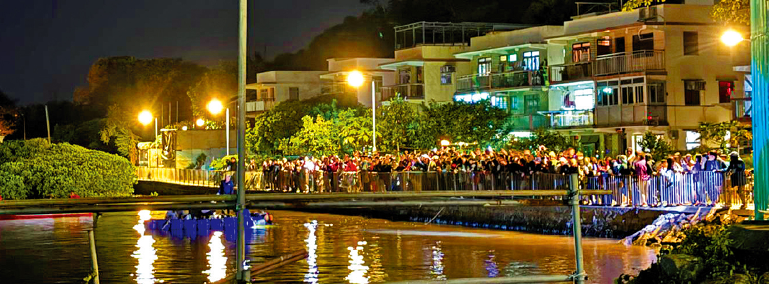 鯨魚擱淺事件引起了市民的廣泛關注。大公報記者昨晚在大澳現場直擊,現場水深及腰,有熱心居民擔心鯨魚情況,已經自發走落海邊,為鯨魚解困,希望協助將牠移到深水處。現場有警方、漁護署及海洋公園專家及相關人員,岸邊有圍觀市民拿起手機照明,有街坊議論紛紛,「直程擱淺咗!」「可唔可以拖返佢(鯨魚)出海啊?」
