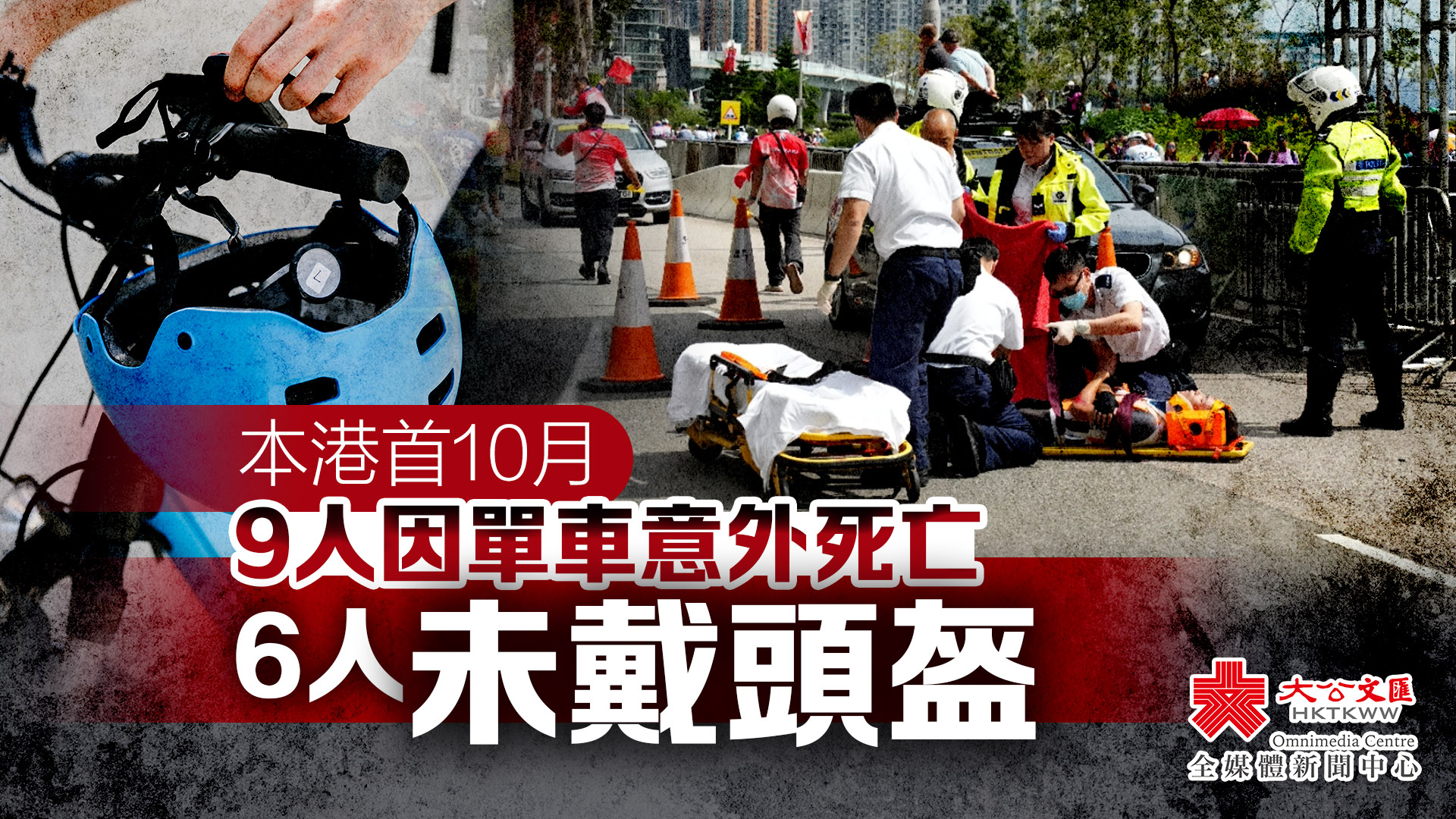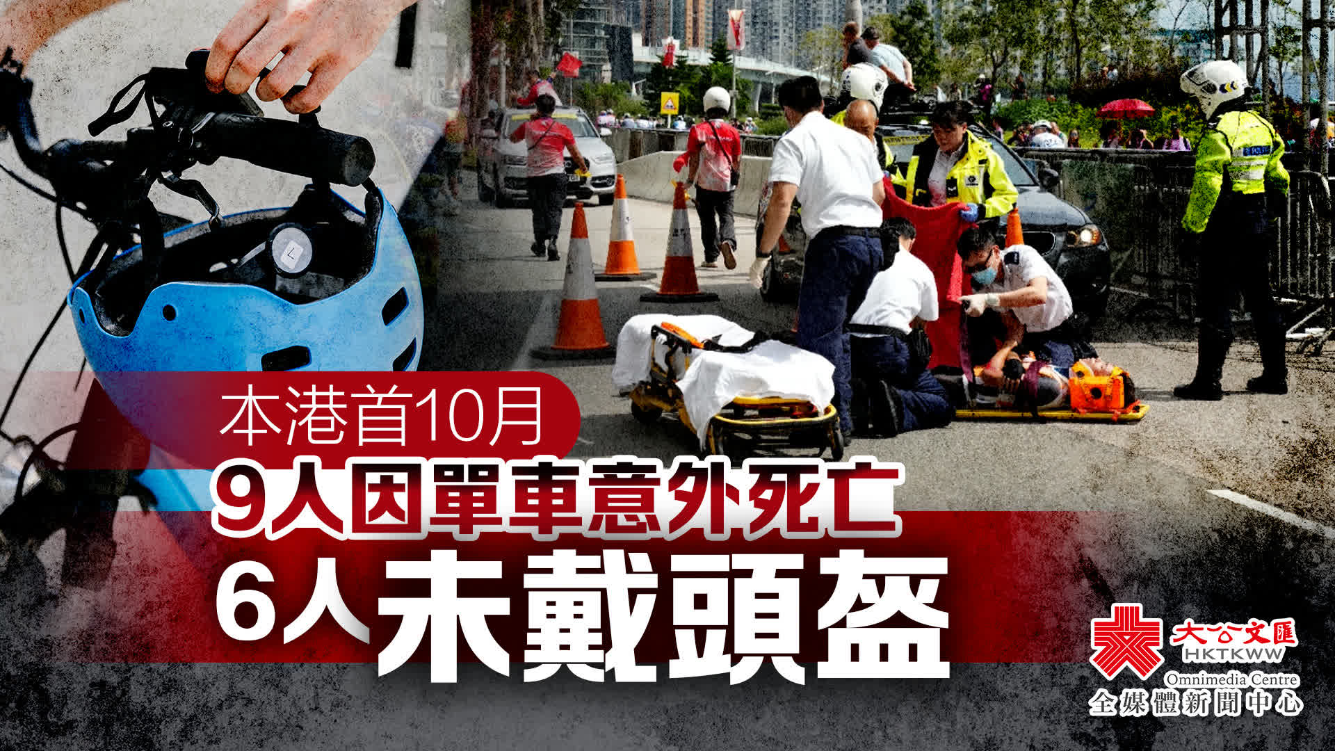 大公文匯全媒體報道,本港單車意外頻發。道路安全議會主席兼香港警務處副處長(行動)周一鳴今日(12月1日)出席道路安全嘉年華表示,本港首10月因單車意外死亡人數從去年的5人增加至今年的9人,其中4人屬於落斜時車輛失控,5人與其他車輛碰撞導致意外,當中有6名死者未有佩戴頭盔。