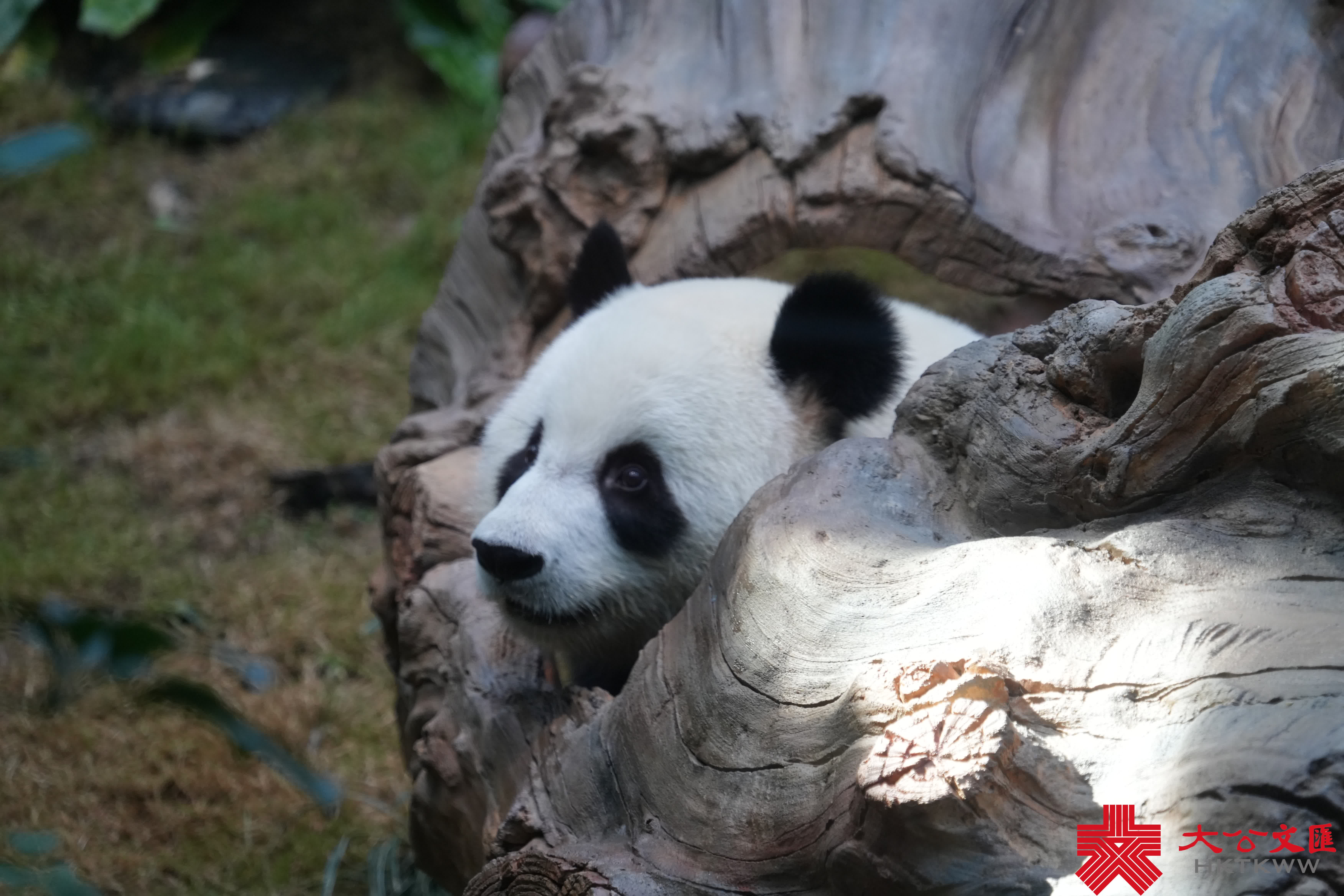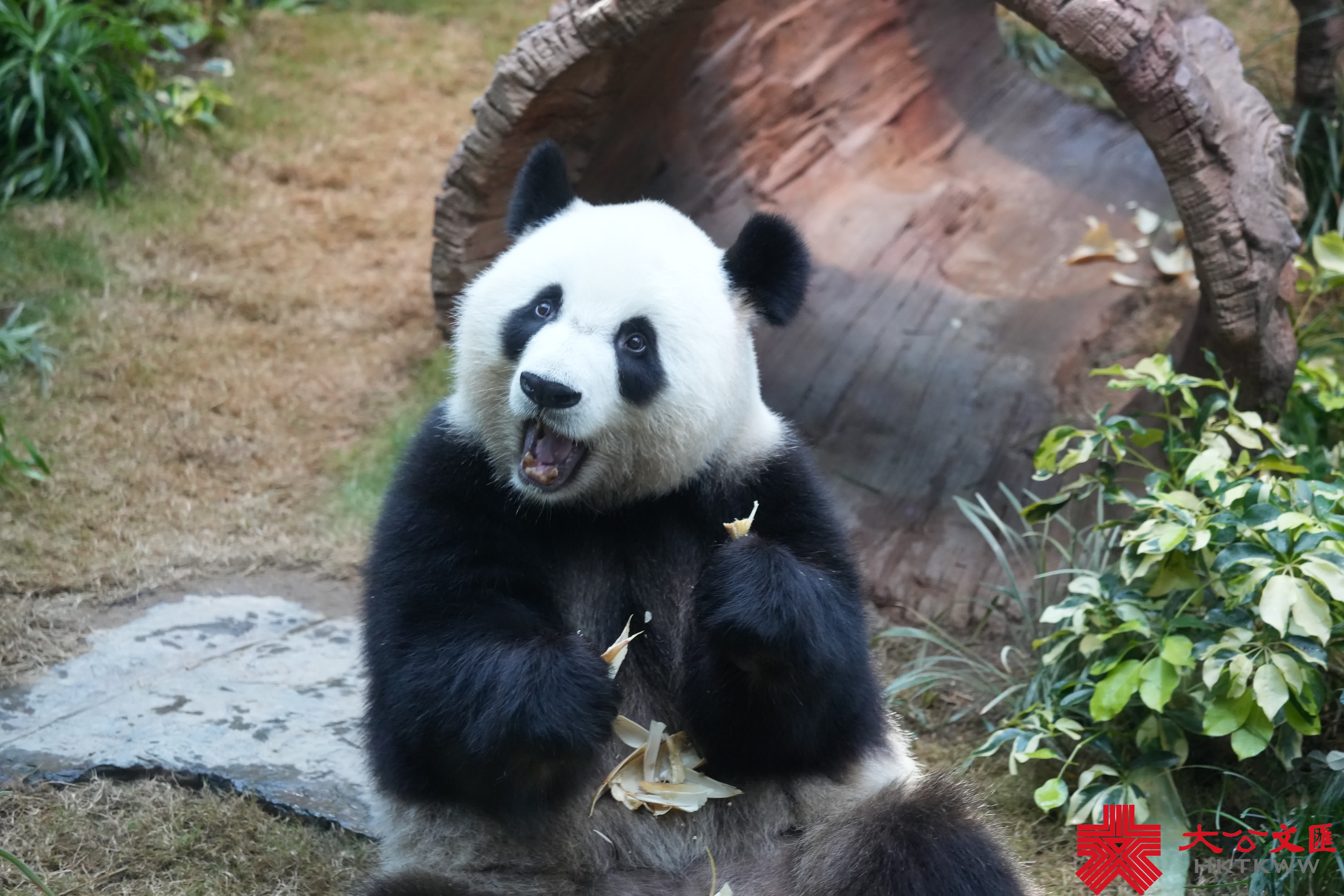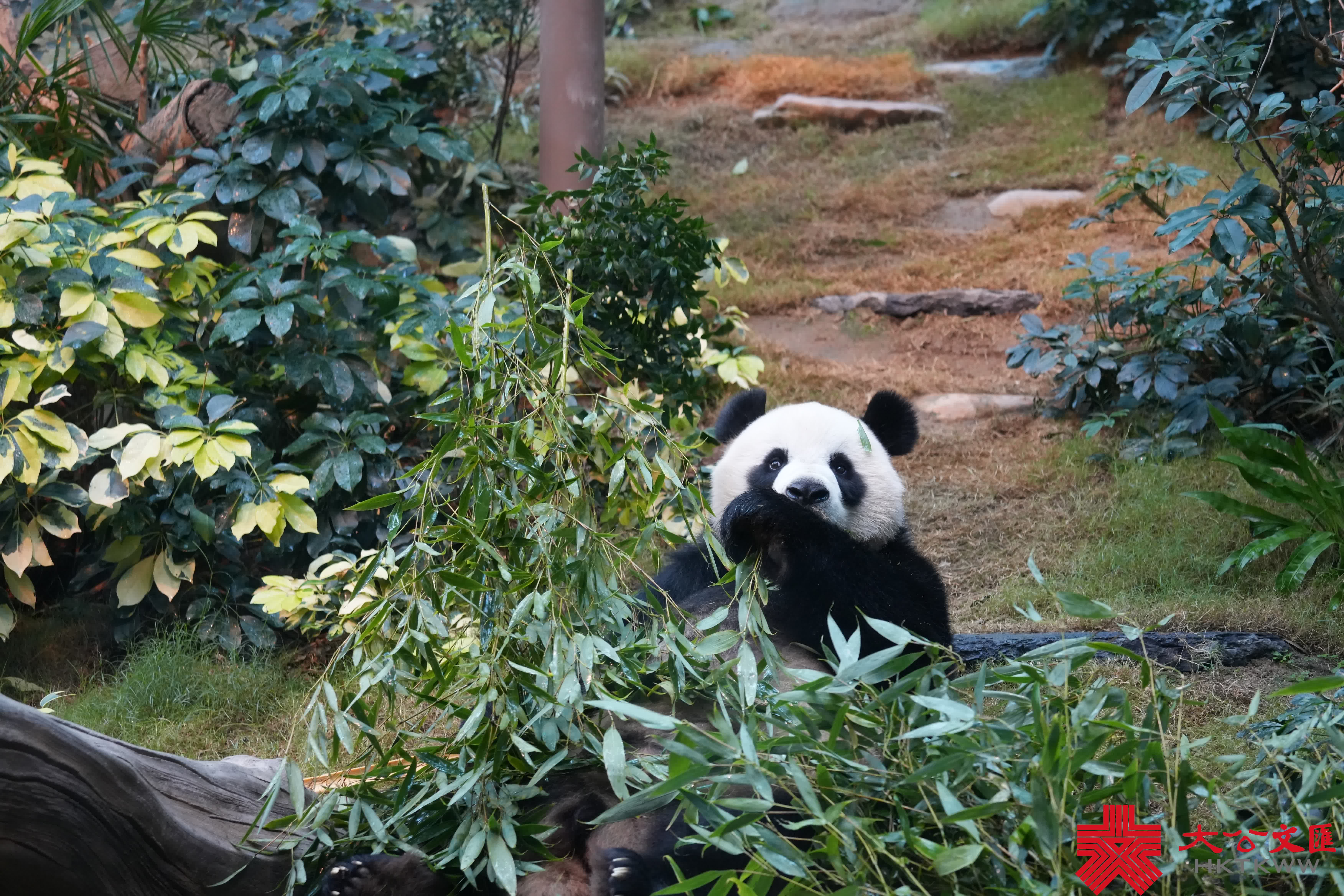 記者還觀察到,海洋公園精心布置了「安安」「可可」的居所。在安安的居所,有一個巨大的紅色玩具球和膠筒供牠玩耍,並有綠化植物、樹枝攀爬架等;在可可的居所,除了標誌性的「寶座」、綠化植物和攀爬架,還有供牠躲避的中空伏木。據工作人員介紹,場館的溫度會維持在19度。