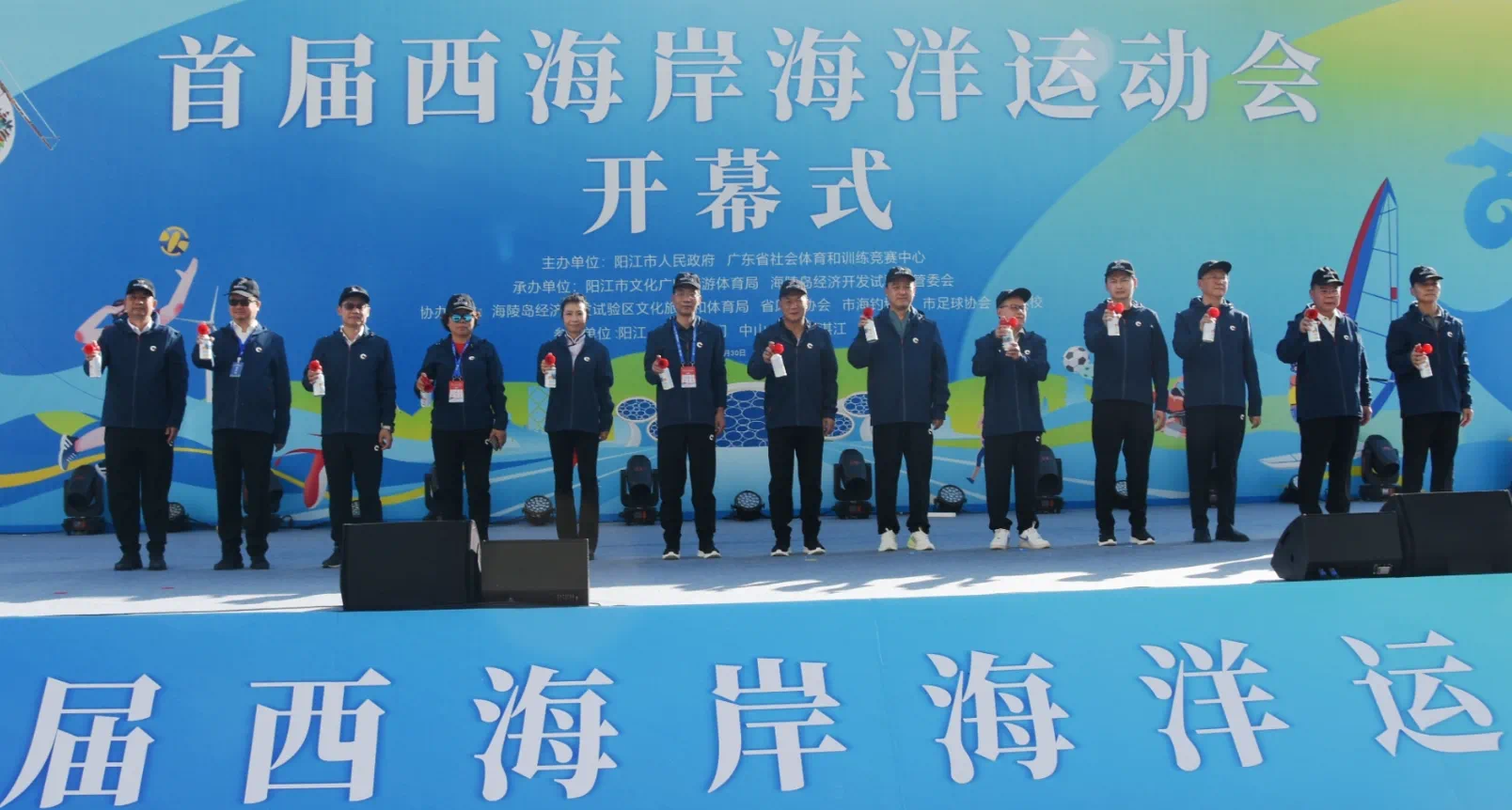 陽江市委書記盧一先,市委副書記、市長餘金富出席開幕式。餘金富在致辭中表示,首屆西海岸海洋運動會在陽江舉行,是促進廣東沙灘及水上運動項目發展、推動體育與文化旅遊深度融合發展、以體育更好助力「百千萬工程」的具體行動。相信本次海洋運動會的舉辦,能夠進一步推動廣東水上運動的發展,提升珠江口西海岸城市群的知名度和美譽度。