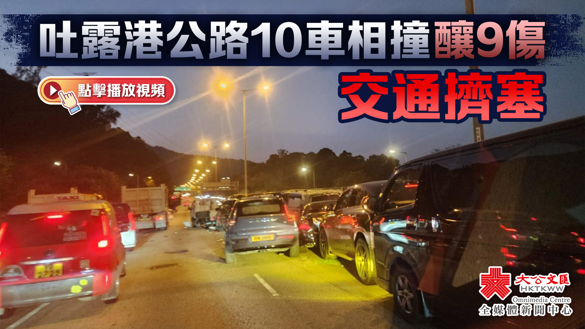 大公文匯全媒體報道,大埔吐露港公路往上水方向近林錦公路交匯處及梅樹坑,今日(2日)傍晚6時許先後發生2宗交通意外,涉及10輛汽車,包括7輛私家車、2輛輕型貨車及1輛中型貨車,並且有9人受傷。多輛救護車到場,把傷者送院治療。