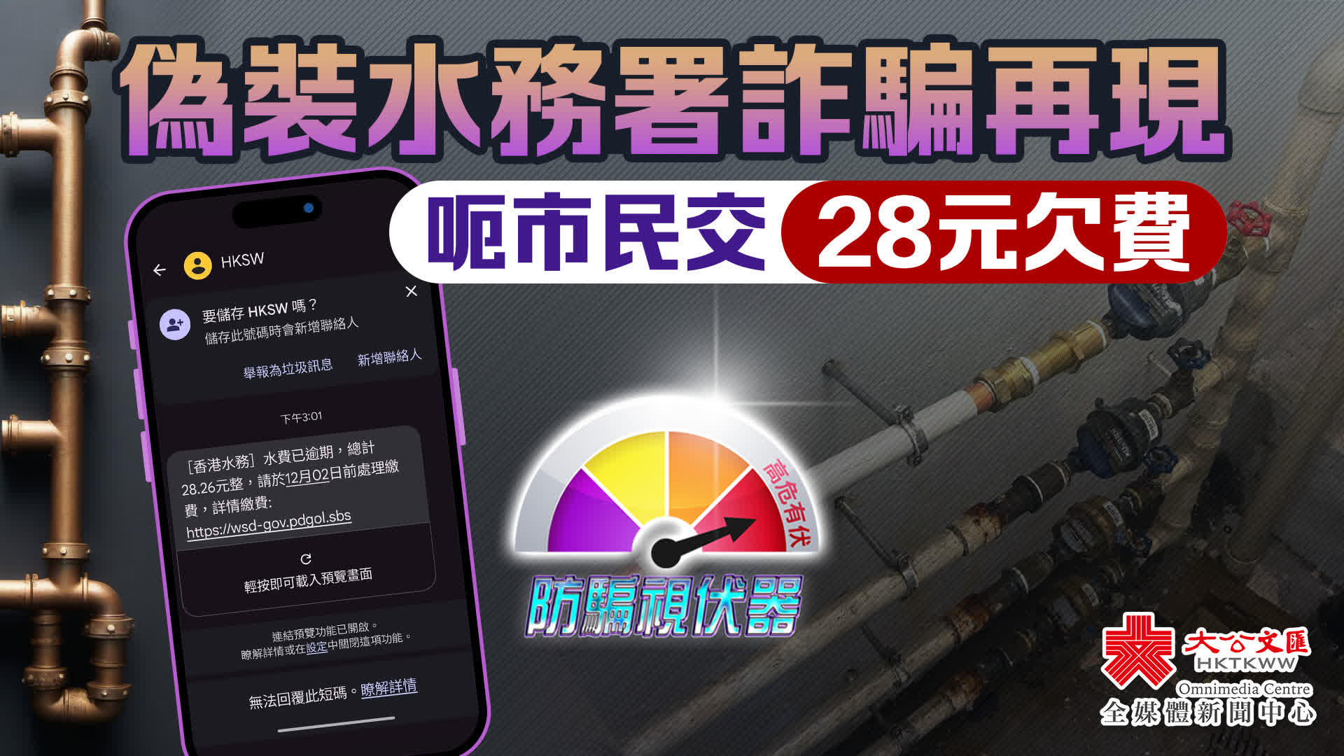 水務署早前提醒,署方已獲得通訊事務管理局辦公室的「短訊發送人登記制」認證,所有由該署發出的短訊都會以「#」號作開頭,方便市民識別短訊發送人身份。