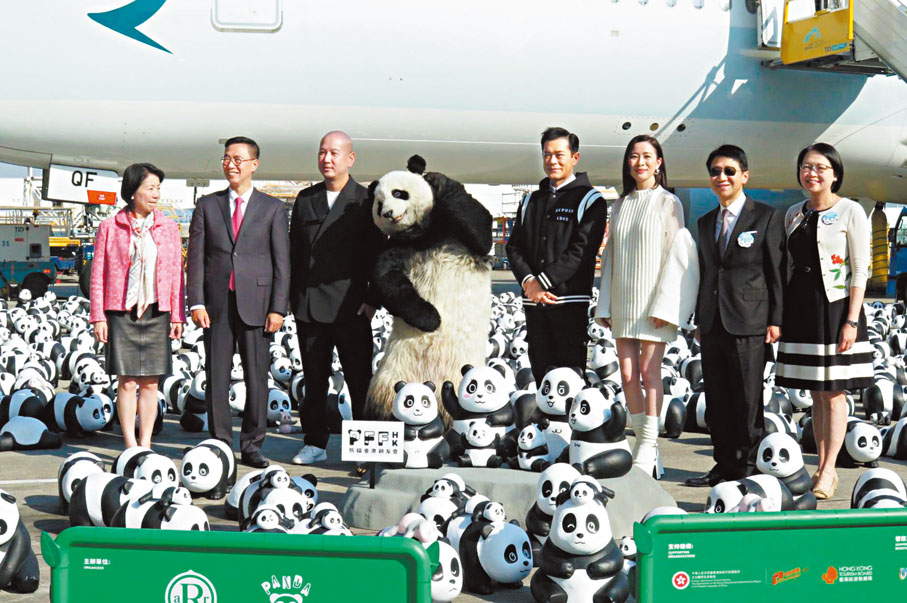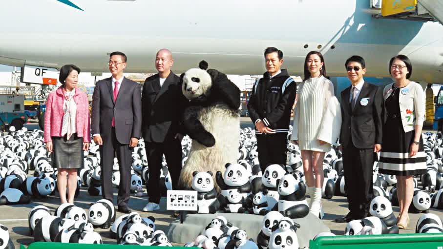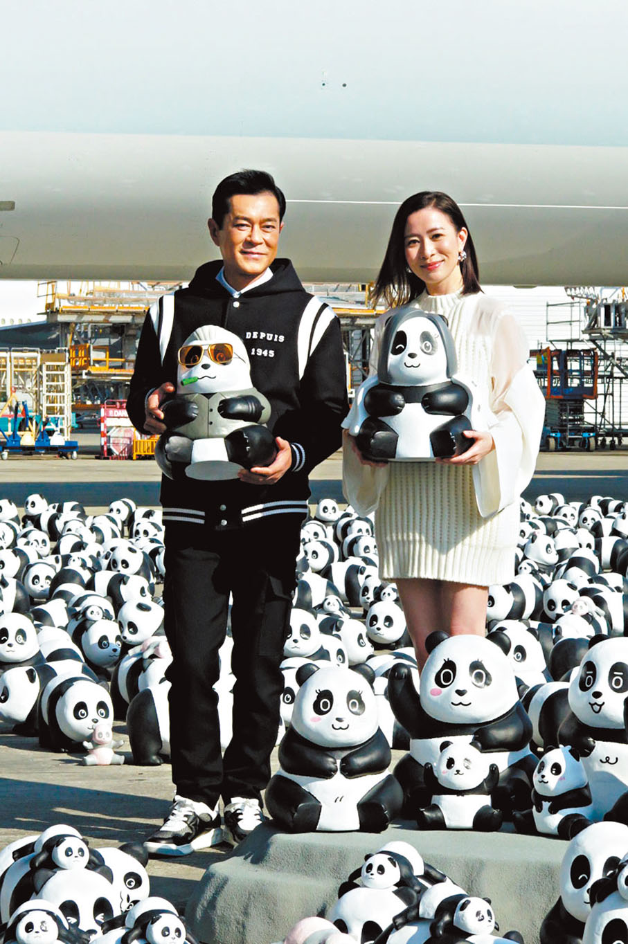 (香港文匯報記者 阿祖)古天樂(古仔)與佘詩曼(阿佘)昨日於機場出席全港最大型熊貓展《Panda Go!香港遊》,二人化身熊貓領隊與2,500隻熊貓亮相為活動掀起序幕,而古仔和阿佘即場獲贈《九龍城寨之圍城》角色「龍捲風」及《新聞女王》「Man姐」造型的熊貓公仔。