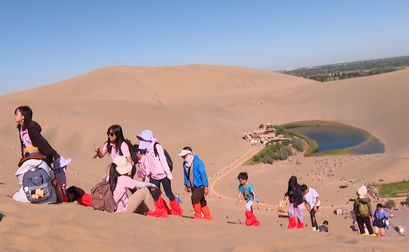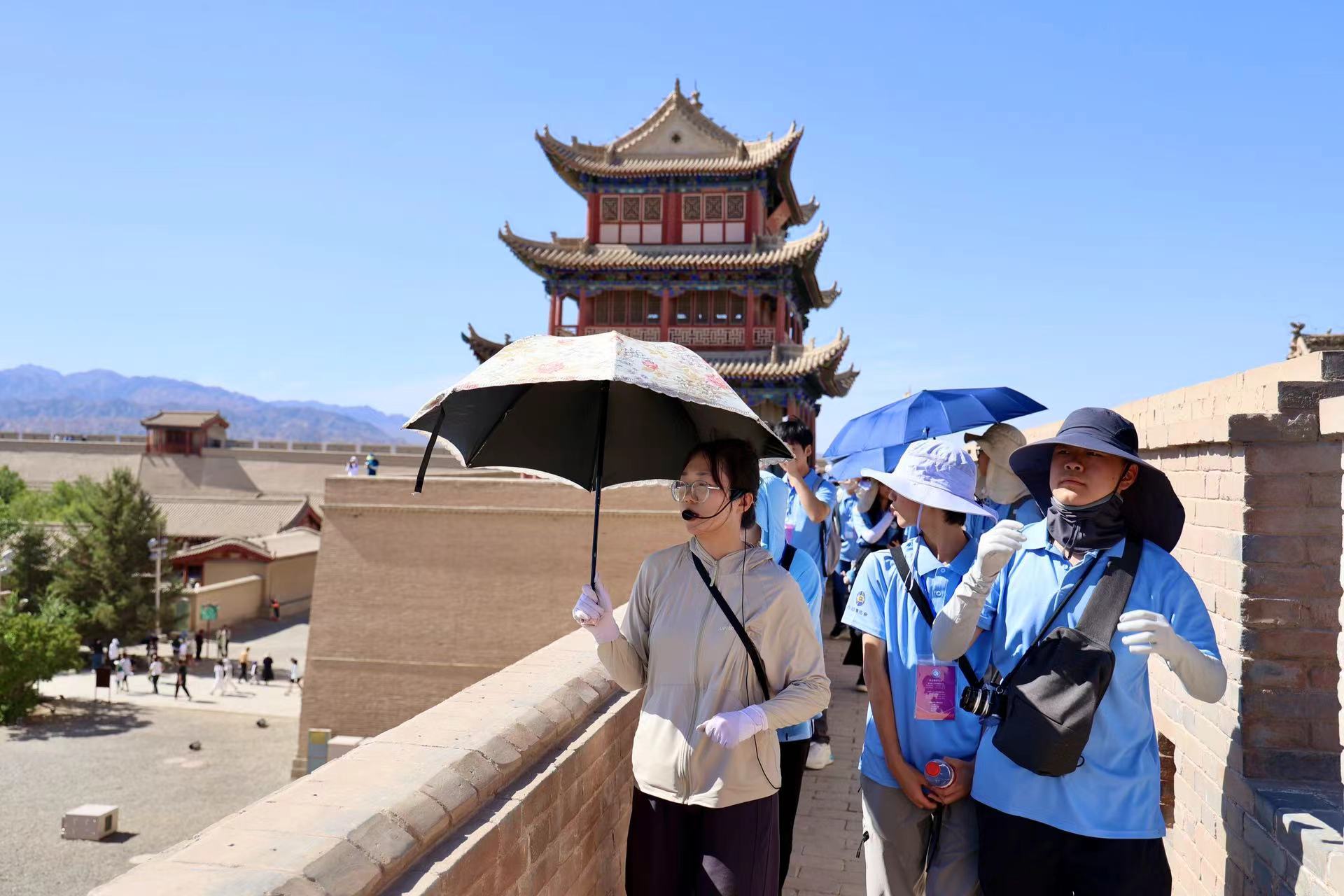 在往後的行程,參訪團來到甘肅,同學們在敦煌一覽被譽為「塞外風光一絕」的鳴沙山月牙泉自然奇觀,以及穿梭莫高窟,欣賞精美絕倫的敦煌壁畫,與其豐富的文化遺產。由敦煌走到嘉峪關的關城之巔,俯瞰蜿蜒起伏的長城,歷史的厚重與滄桑感油然而生。其後,他們前往位於張掖的中國工農紅軍西路軍紀念館,緬懷革命先烈豐功偉績,以及飽覽張掖丹霞的地貌奇觀。最後一站來到蘭州,同學透過觀賞甘肅省博物館的館藏珍貴歷史文物,感受絲路文化的璀璨光輝。他們另外又到中核蘭鈾甘肅省科普教育基地,參觀王承書紀念館了解國家核工業發展歷史等。