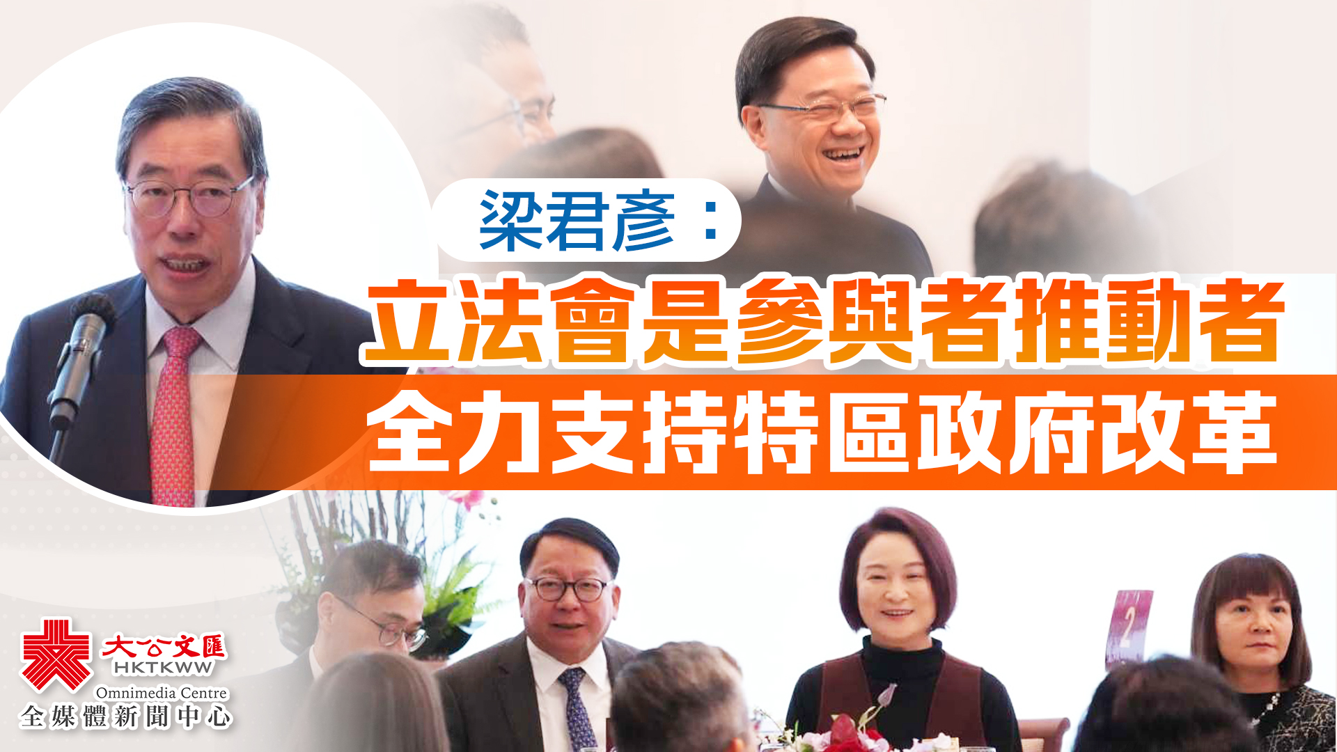 (大公文匯全媒體 記者 王俊傑)立法會今日(3日)舉行午宴,宴請行政長官李家超、行政會議成員及政府高級官員出席。立法會主席梁君彥認同李家超提出,改革只有進行時,沒有完結時,強調立法會作為特區政府管治團隊的重要組成部分,不會是改革的旁觀者、評論者,而是改革的參與者、推動者,會全力支持特區政府的改革理念和藍圖。他相信,只要堅持守正創新,通時達變,自強不息,香港必定能乘風破浪,再創高峰。
