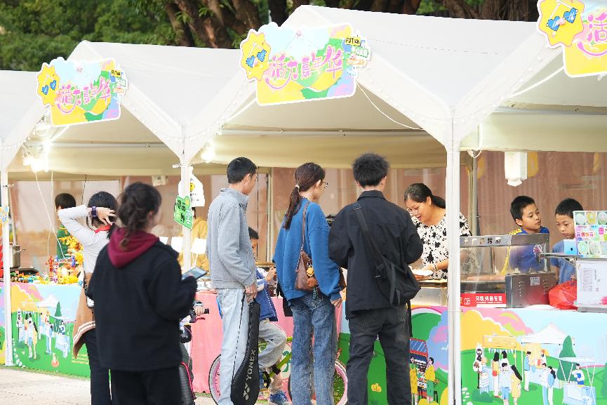 社交區圍繞「慢生活」主題進行布置,露營區、桌遊區、品酒會和戶外舞會等多樣化的活動形式,為參與者提供更自然輕鬆的社交體驗。在這裏,大家可以放下緊張忙碌的生活節奏,沉浸在都市自然生活的恬靜之中。特別值得一提的是「相親角」,專為單身大灣區市民打造,參與者可以在輕鬆愉悅的環境中結識新朋友,增強情感互動。面向青年群體的潮流互動區則為年輕人帶來一場「燃動潮酷」的互動體驗。這裏有說唱快閃、飛盤競技、情歌對唱等系列活動,打造「飛盤交友局」等富有趣味的交友場景。特別策劃的潮流個人表演邀請了當地網絡紅人說唱快閃演員,為大家帶來幽默風趣的現場表演。還有光影區,這裏通過復古電影展映、經典舊物展示、文創主題展覽等活動,為大灣區市民構建出一條跨越時空的光影之旅。