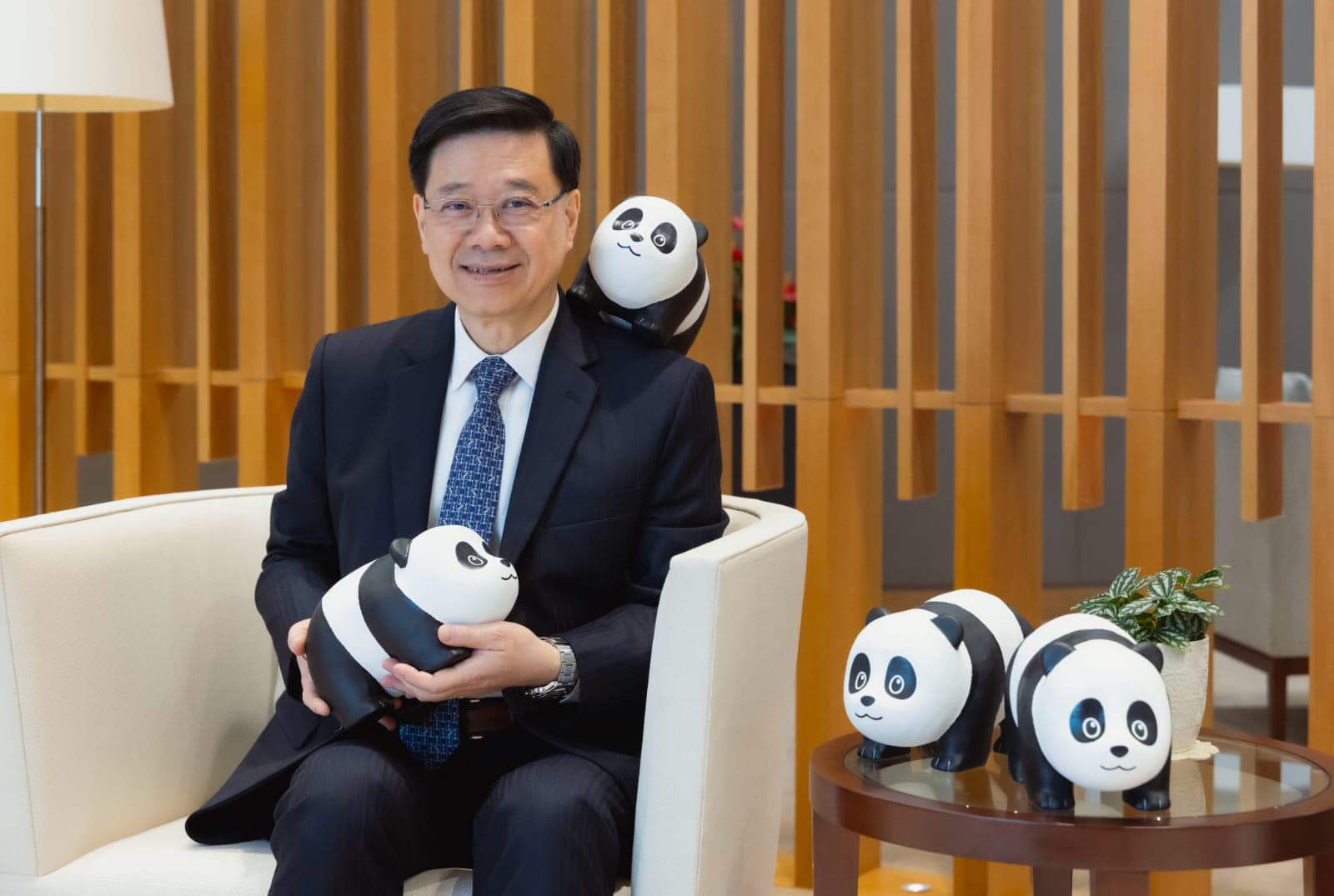 李家超表示,適逢大熊貓「安安」和「可可」將於周末開始與公眾見面,他很高興和數隻熊貓仔一起為「安安」「可可」的亮相提早熱身、預熱氣氛。